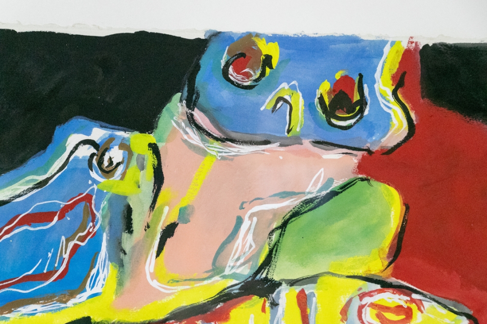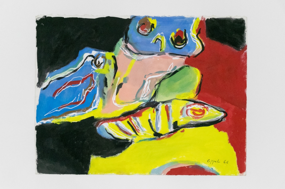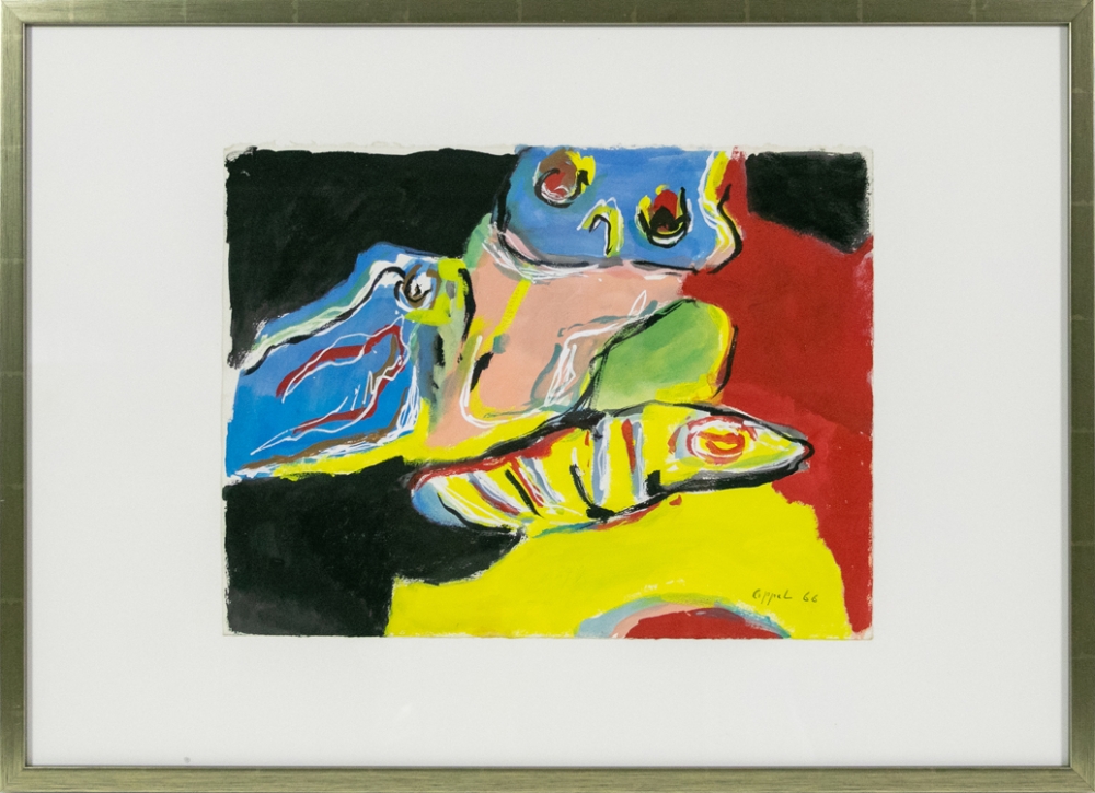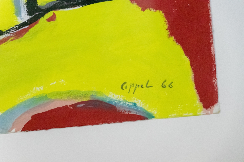 Unieke, originele tekening/schilderij met gouache op karton van Karel Appel.