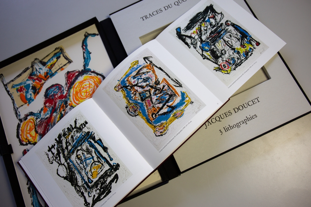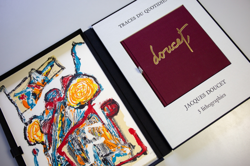Luxe editie: 3 met potlood gesigneerde Lithos van Jacques Doucet + boek met tekst door Corneille en Joseph Paul Schneider in een mooi zwart portfolio!