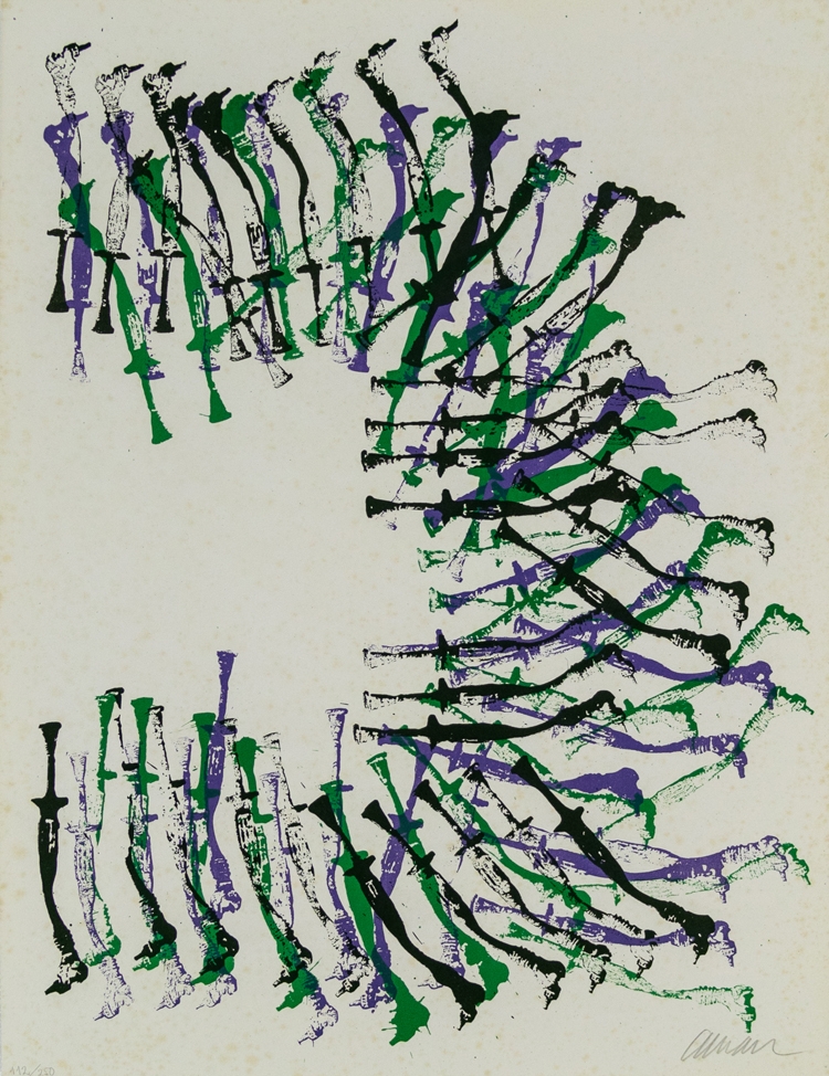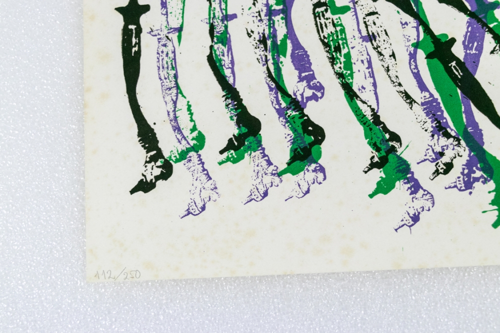 Lithograph of Pierre Fernandez Arman in his well-known style. The work is numbered 112/250 and signed by hand.