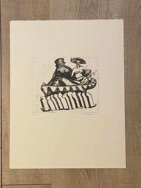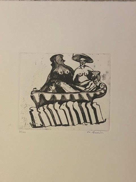 Very nice etching by the Belgian artist Vic Gentils. Matching with the etching is printed on both sides. There is some looseness in between. Signed and numbered by hand. Perfect condition. Quantity 36 of 50 copies