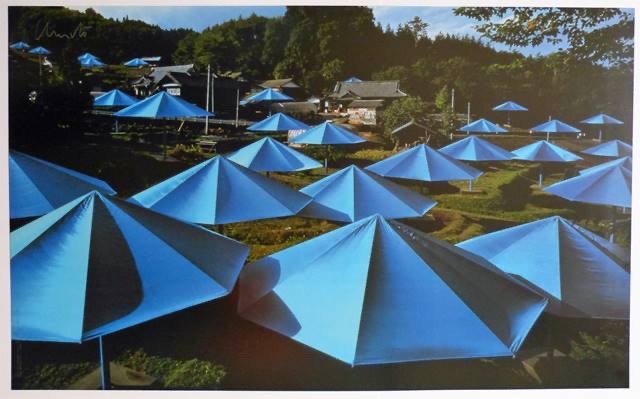 Beautiful large offset lithograph by Christo. The work entitled The Umbrella's Japan Measures 64 x 95 cm and is hand signed with silver pen. The work was printed in 1991 and is in very good condition.