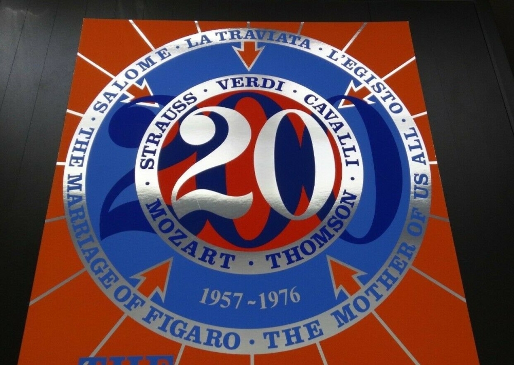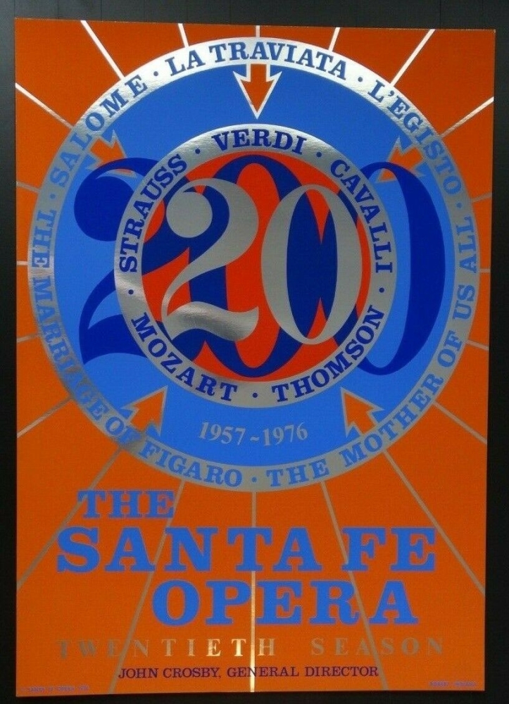 Kunstenaar: Robert Indiana (1928-2018) Kunstwerk: Santa Fe Opera 20th Anniversary Season Jaar: 1976 Grote helder gekleurde litho, door Robert Indiana ontworpen. Indiana heeft deze afbeelding ontworpen voor het 20-jarig bestaan van The Santa Fe Opera.
