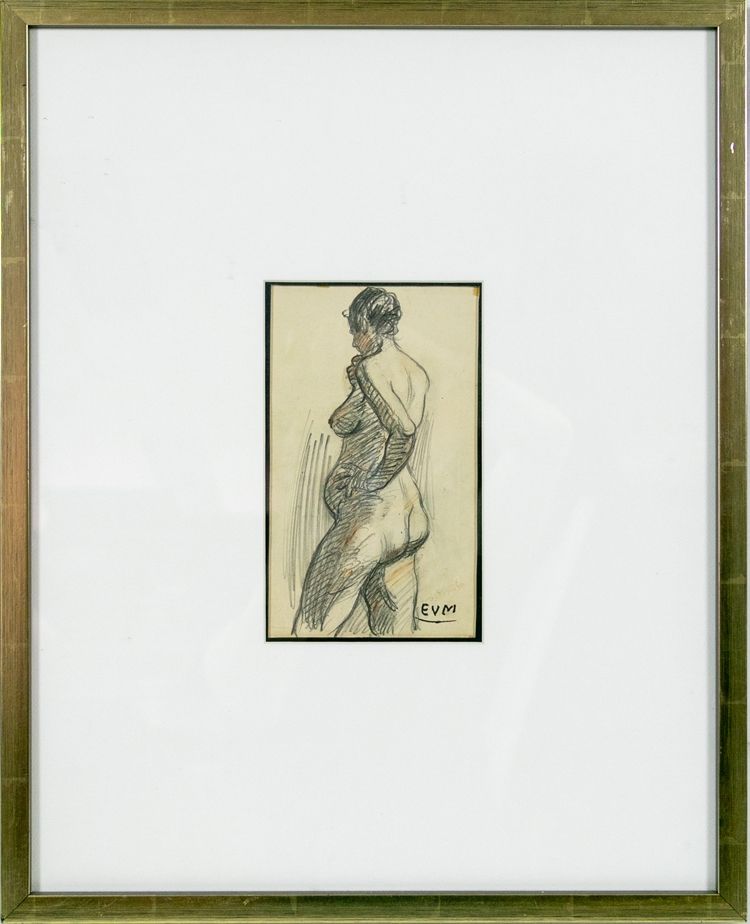 Potloodtekening van Eugene Van Mieghem, onderaan gesigneerd.