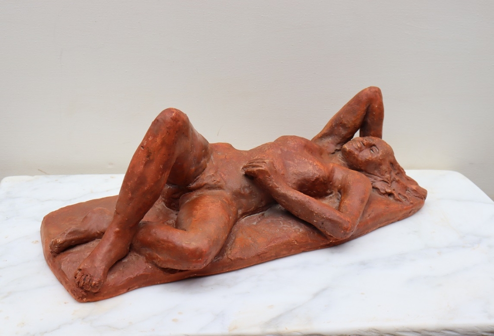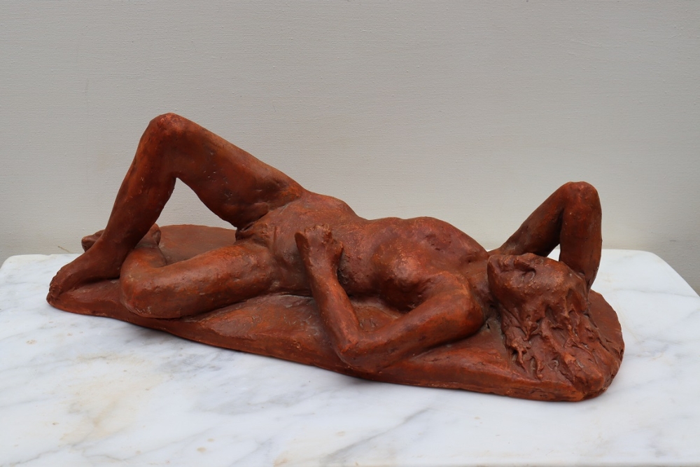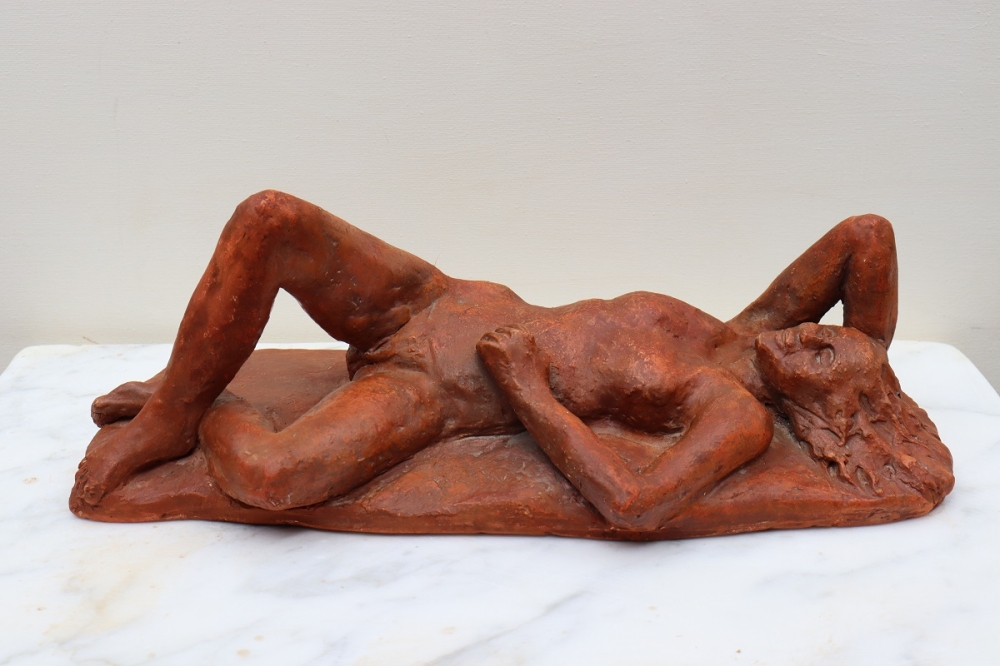 Vrouw in Rust Relaxing Woman Unicum Ook geschikt voor buiten Gewicht 4.7 kg Chantalle Smeets is na 4 jaar WIK (wet inkomensuitkering kunstenaar) in Maastricht Nederland, 20 jaar actief als professioneel kunstenaar. Samen met Martiene Stevens (haar partner en ook kunstenaar), beheren zij Kunsthuis Trobar Riemst (B). Chantalle Smeets heeft gedurende die jaren een geheel eigen stijl ontwikkeld, Hetgeen zichtbaar wordt in haar beelden van brons,steen,keramiek en hout. Haar inspiratie bron is de natuur. Zij heeft geëxposeerd bij diverse galeries en kastelen (ook beeldentuinen) in Nederland en België. Naast haar sculpturen in diverse afmetingen exposeert ze ook schilderijen op doek en paneel in gemengde technieken.