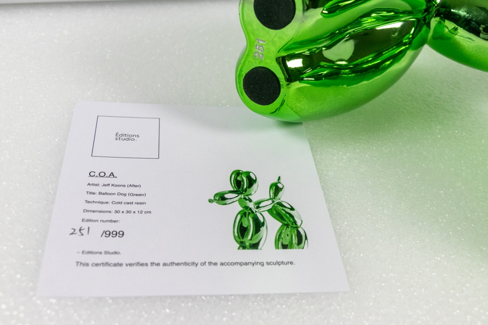 Resin sculpture by Jeff Koons, published by Éditions Studio. Edition limited to 999 pieces, of which this number is 251.