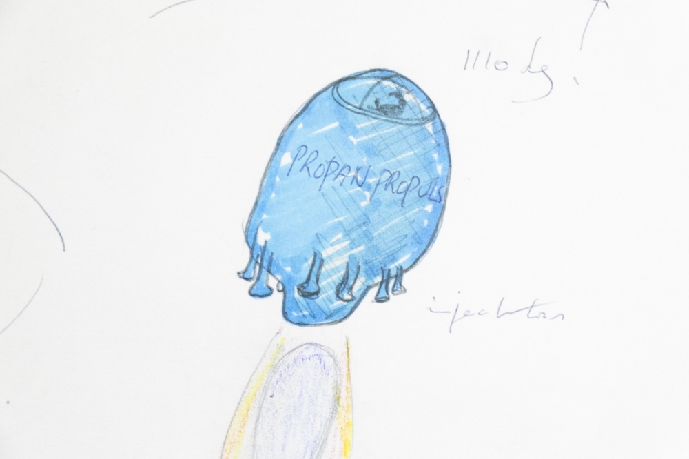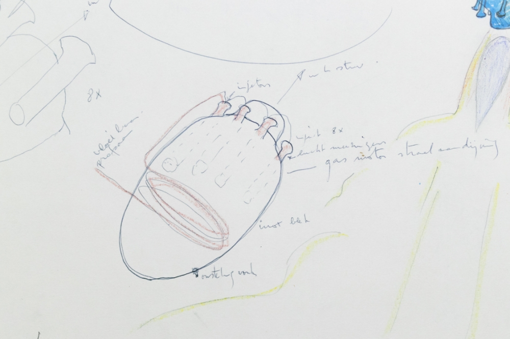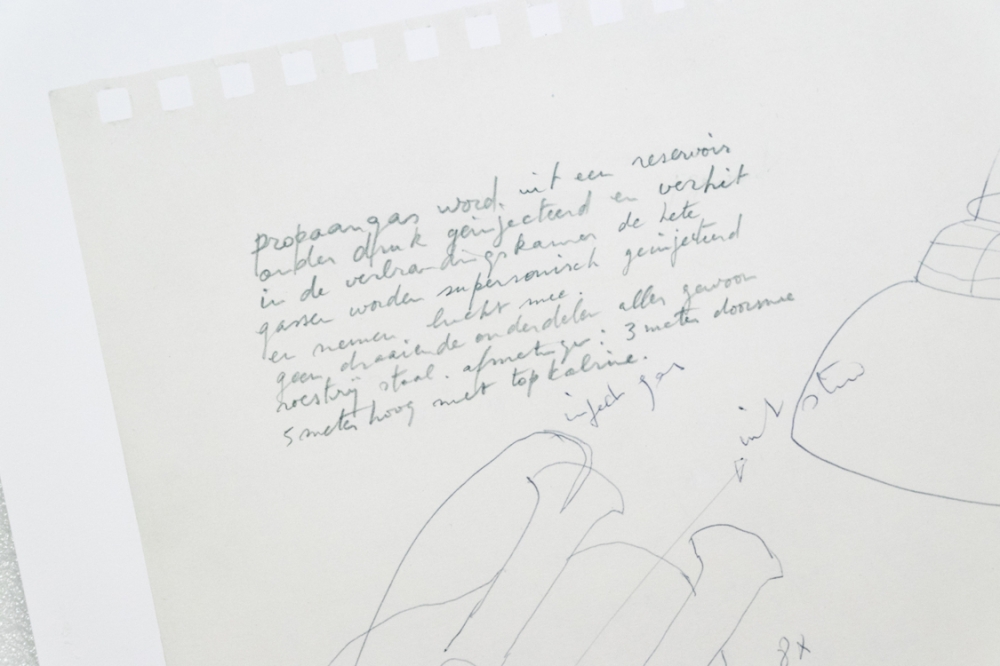 What is special about the work is that it contains a writing error. The text mentioned on the work "Propane gas word" must be written with dt. This is what characterizes Panamarenko.