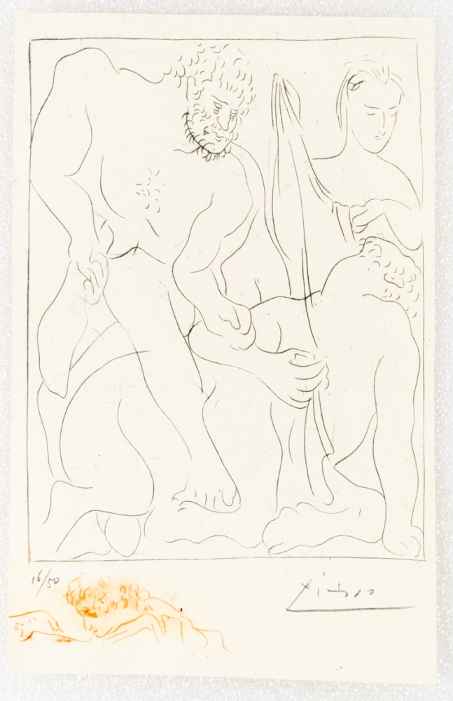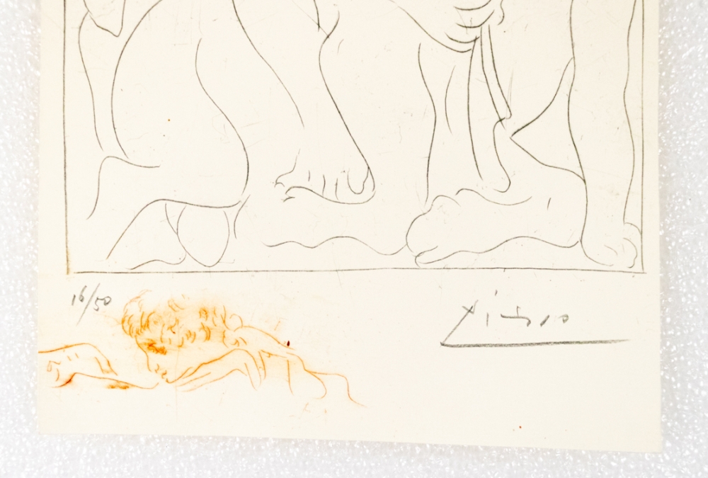 Signed etching of Picasso's "Les métamorphoses d'Ovide", a collection of etchings. Released in 1967 with rights from SPADEM Paris 1967. Copy in good condition.