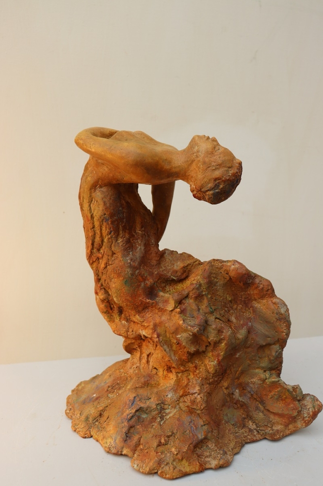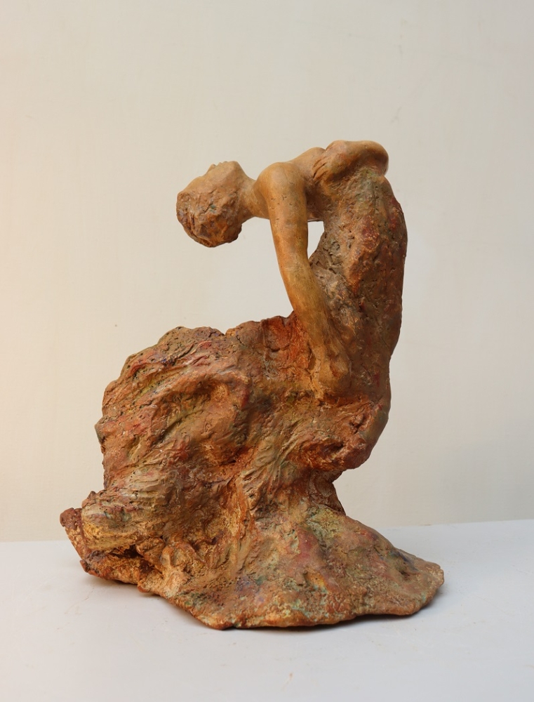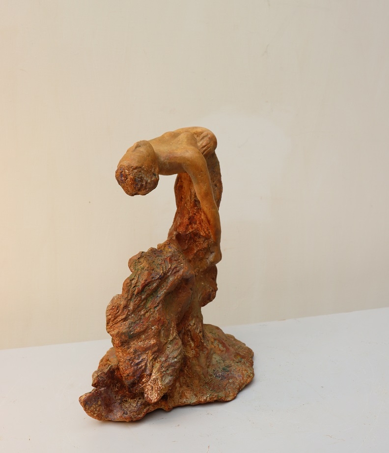 Vreugde Dans Gepatineerd in warme bronzen kleuren Ook geschikt voor buiten Gewicht 3.5 kg Chantalle Smeets is na 4 jaar WIK (wet inkomensuitkering kunstenaar) in Maastricht Nederland, 20 jaar actief als professioneel kunstenaar. Samen met Martiene Stevens (haar partner en ook kunstenaar), beheren zij Kunsthuis Trobar Riemst (B). Chantalle Smeets heeft gedurende die jaren een geheel eigen stijl ontwikkeld, Hetgeen zichtbaar wordt in haar beelden van brons,steen,keramiek en hout. Haar inspiratie bron is de natuur. Zij heeft geëxposeerd bij diverse galeries en kastelen (ook beeldentuinen) in Nederland, Spanje en België. Naast haar sculpturen in diverse afmetingen exposeert ze ook schilderijen op doek en paneel in gemengde technieken.