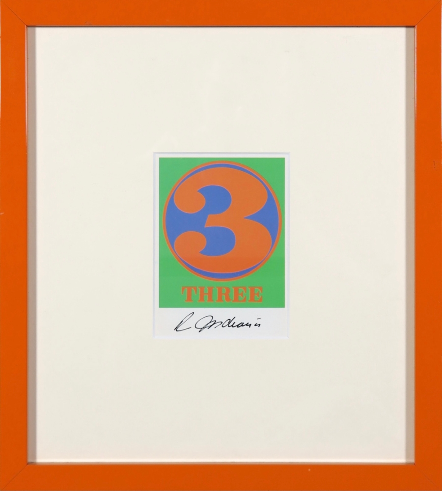 A typical work of the American artist Robert Indiana in art card form This small work is an art card signed by the artist and beautifully framed in a colorful frame. The frame shows signs of use.