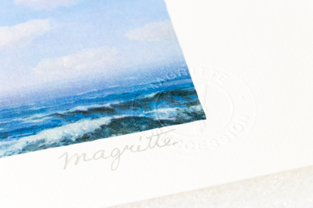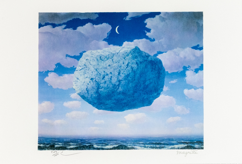 Lithograph of "La Flèche de Zénon" by René Magritte published in 2010 by Fondation Magritte and limited to 300 pieces. Magritte's signature was put in print.