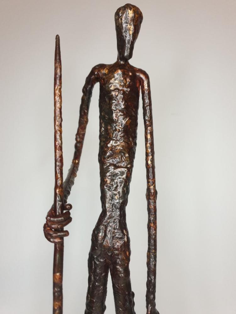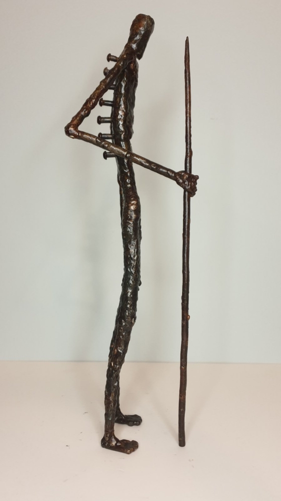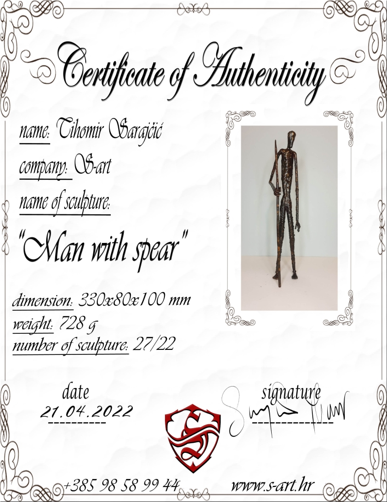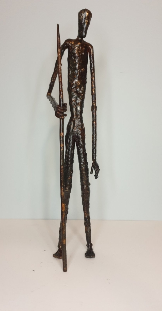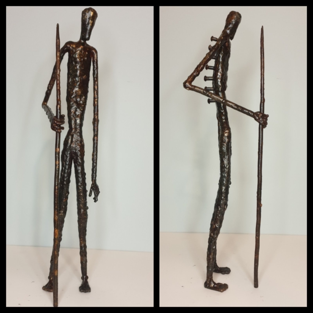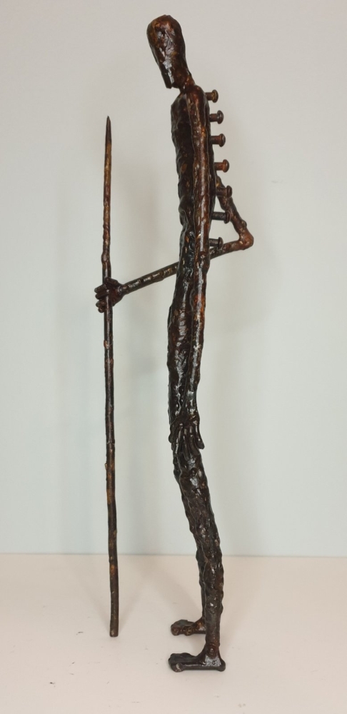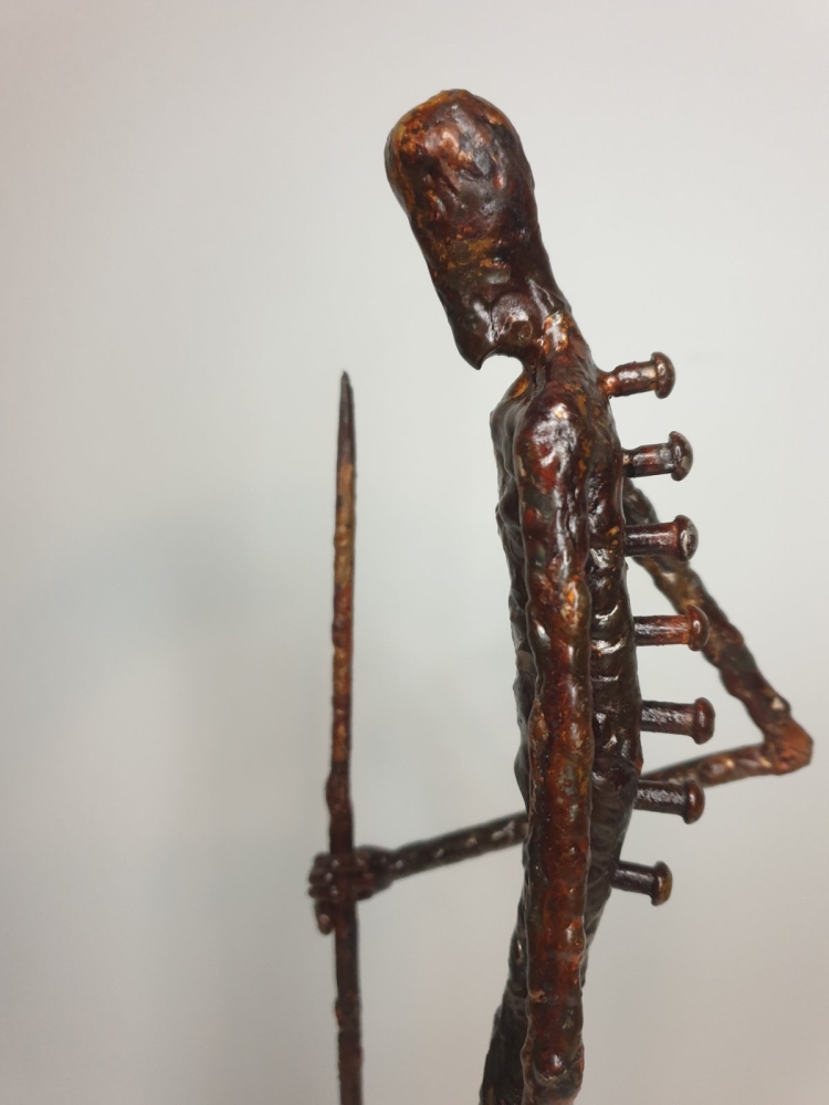 Man with spear sculpture from S-art studio. Unique welded and forged metal sculpture,rusty color, sprayed with transparent spray for protection. One of a kind work, comes with a certificate of authenticity. IMPORTANT NOTE: SHIPPING TO THE EU ONLY - NO SHIPPING TO NON-EU COUNTRIES.