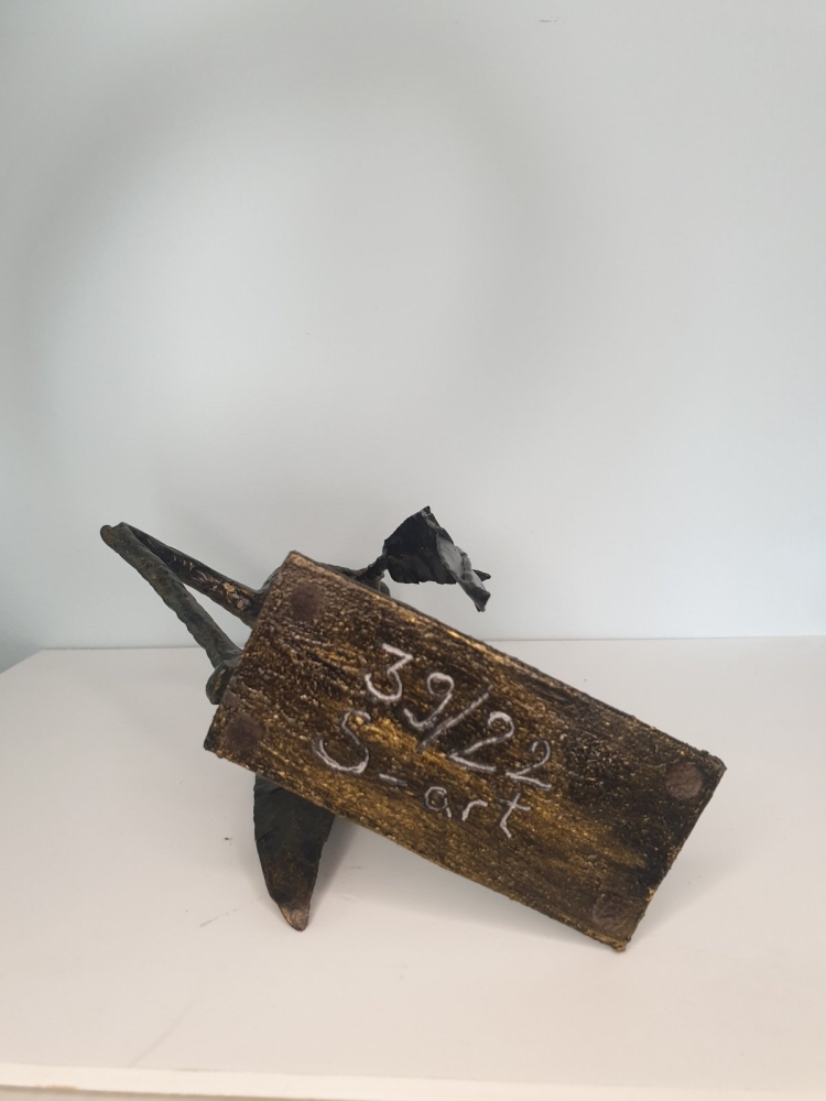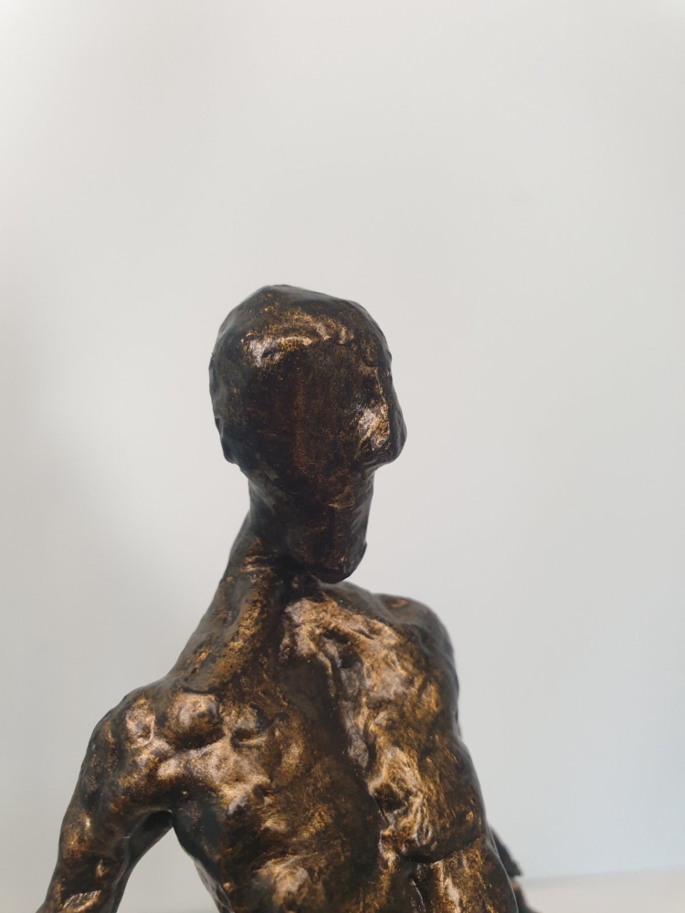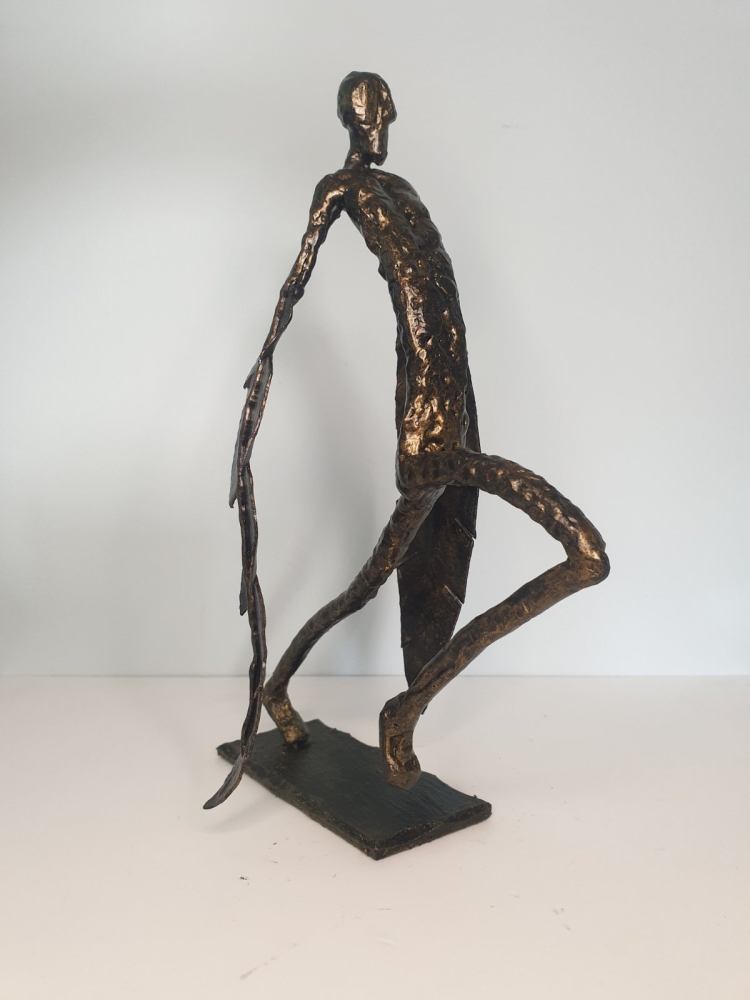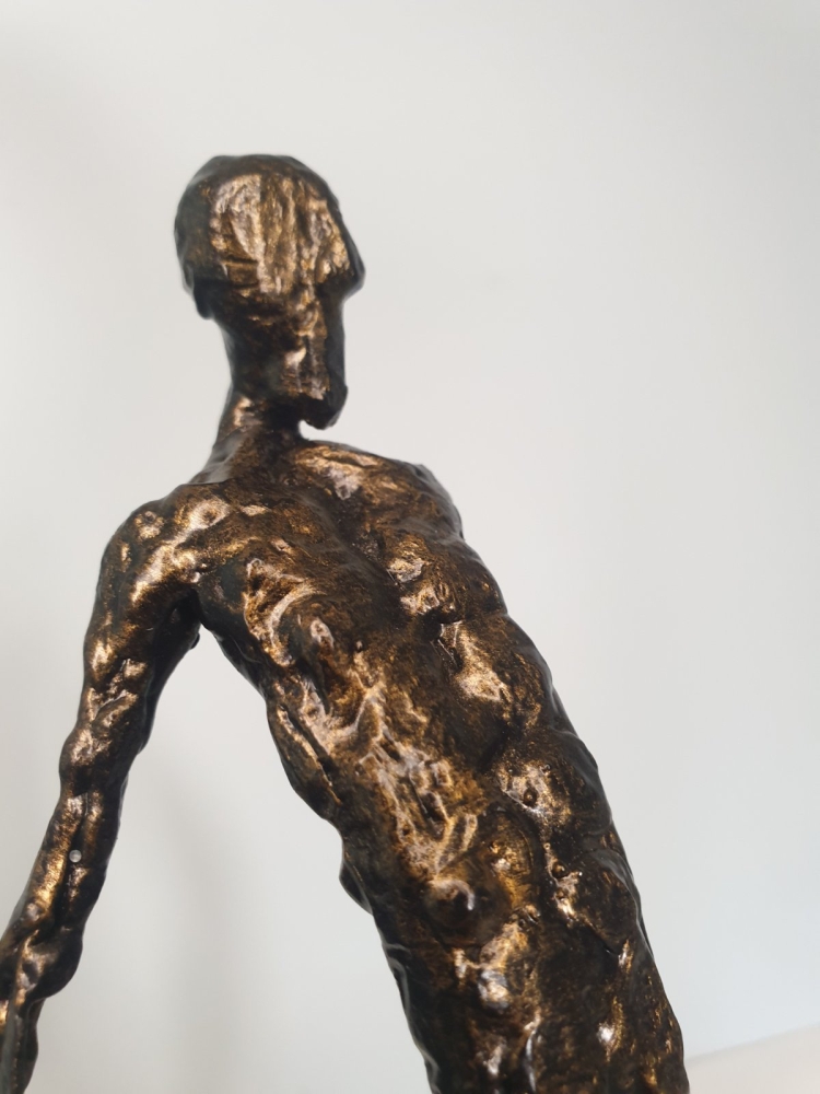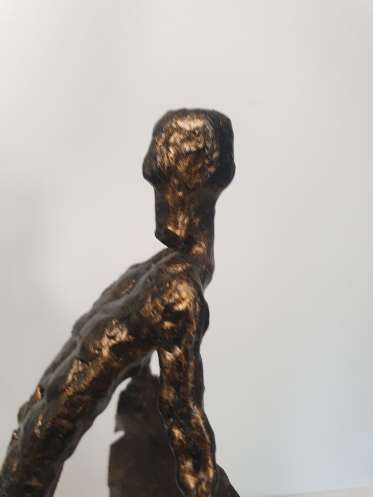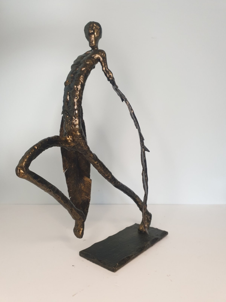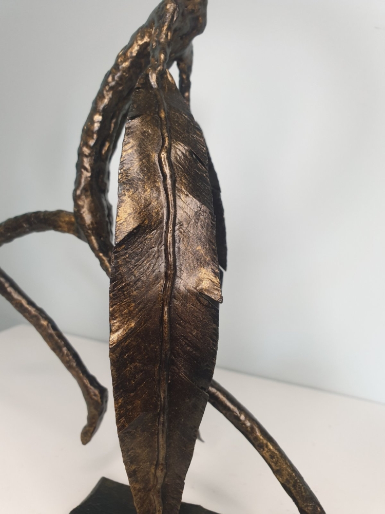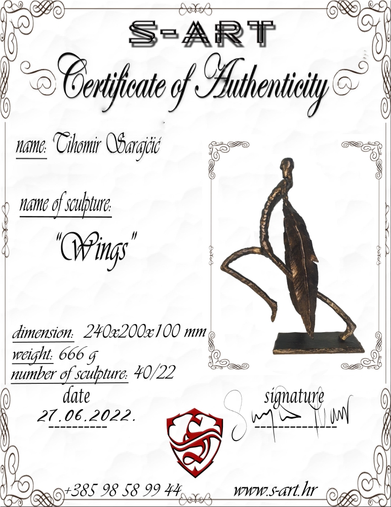 Man with feathers called "Wings" sculpture from S-art studio. Unique welded and forged metal sculpture,coloe: black witg golden wax, sprayed with transparent spray for protection. One of a kind work, comes with a certificate of authenticity. IMPORTANT NOTE: SHIPPING TO THE EU ONLY - NO SHIPPING TO NON-EU COUNTRIES.