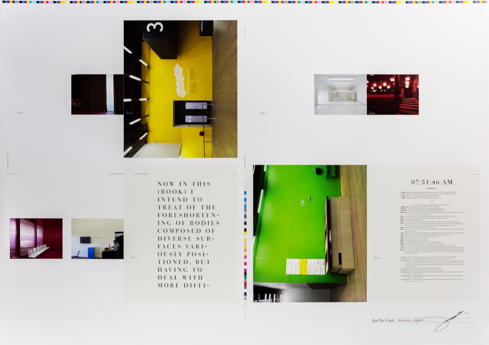 Gesigneerde print (p12) van Jan de Cock's "Occupying the Museum" van 2005-2012. Het werk Occupying the Museum is een tentoonstelling op papier van de bezetting Denkmal 53 in Tate Modern. Een tachtigtal kaders gaan in op verschillende aspecten van het werk van De Cock en op de reactie van toeschouwers op zijn installaties. De kunstenaar duidt zijn werken aan met ‘Denkmal’, het Duitse woord voor ‘monument.’ Tegelijk bestaat het uit de woorden ‘denk’ en ‘mal’ en kan het dus gelezen worden als “een vorm voor het denken”, over de relatie van de kunstenaar tot de museumwereld. De Cock wil de realiteit een nieuwe vorm geven, en de toeschouwer uit zijn normale denkpatroon halen.