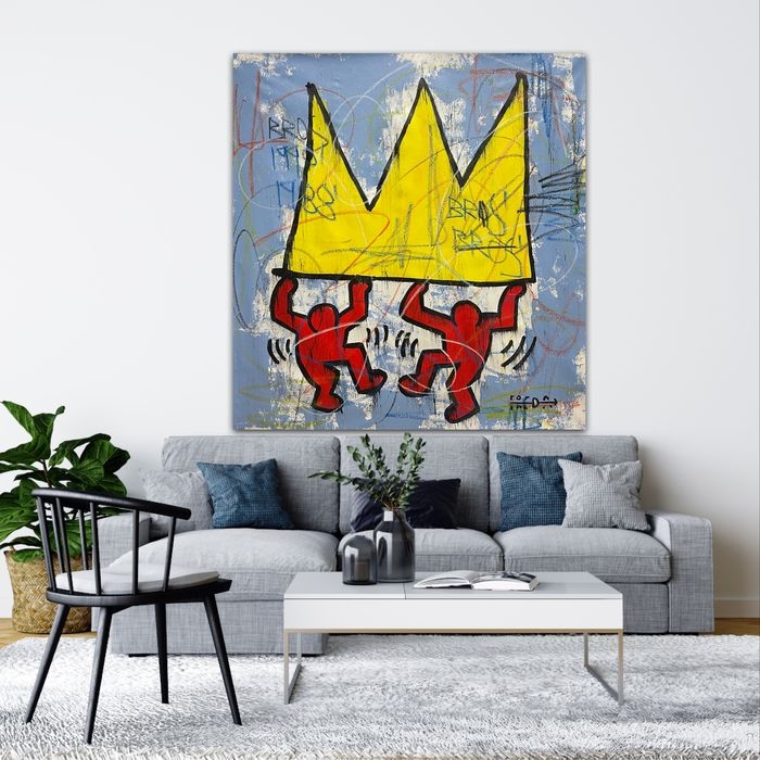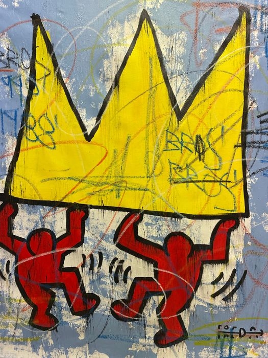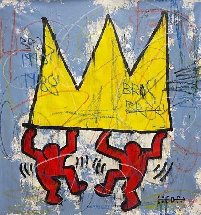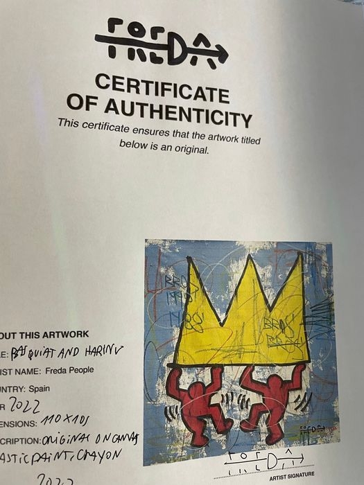 Ideal investment for companies and individuals. Big format painting Plastic paint on canvas Typical style of Freda People Size 110cm x 105cm The canvas comes with certificate of authenticity by "Freda People" Gallery price: 3000 View the artwork in our online gallery: https://assets.artplacer.com/virtual-exhibitions/?i=4952 Freda People Art are David Salvador and Javier Salvador, 2 young brothers from Barcelona, Spain. From their early years they felt great attraction for art in all its aspects, they began painting in the street, inspired by artists like Keith Haring, Basquiat, Picasso, or Dali. Many artists, including Joaquim Falco, are inspired by his art. His works are in galleries in the United States, France, Austria, Germany, Finland. They have collaborated on paintings with the actor and painter Jordi Mollà in Miami, 2020. In November 2021 they carry out a project in Milan with the celebrity of Tik Tok Khaby Lame. With an eclectic style they paint, make sculptures and collage, they have sold more than a thousand works around the world. They usually participate in exhibitions and galleries in Barcelona, where they currently work, although their works have been sold in places such as United States, Mexico, Spain, France, Belgium, Austria, Switzerland, Germany, Italy, Sweden, Poland, Finland, Uk, Hungary, Romania, Japan, Estonia, Turkey, Puerto Rico, Czech Republic, China.