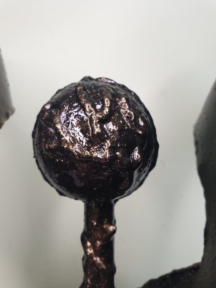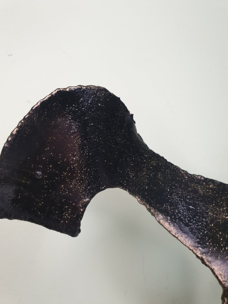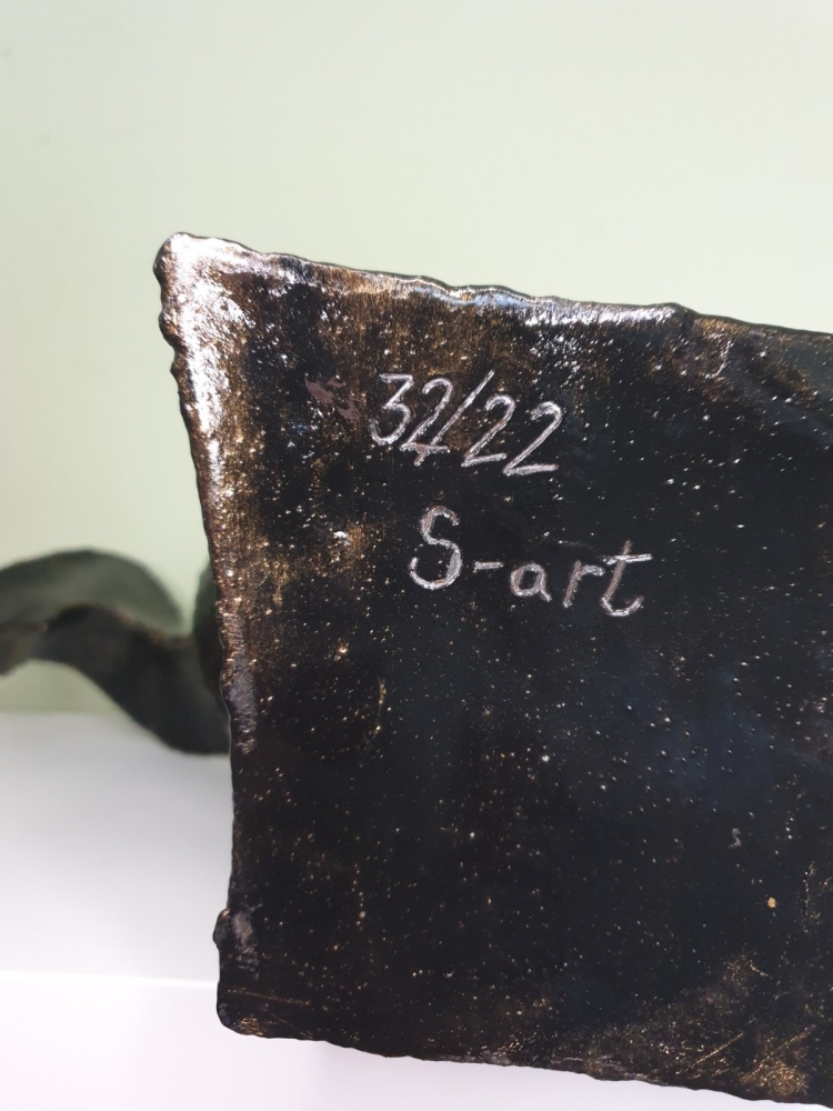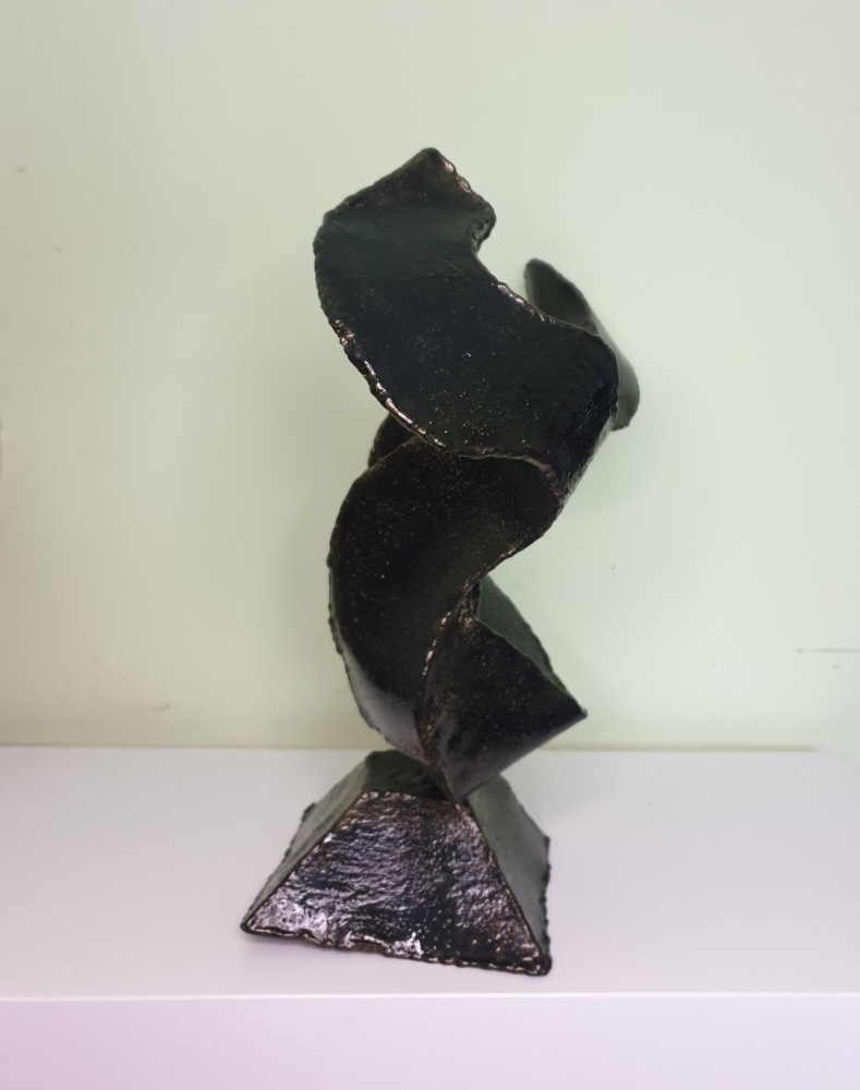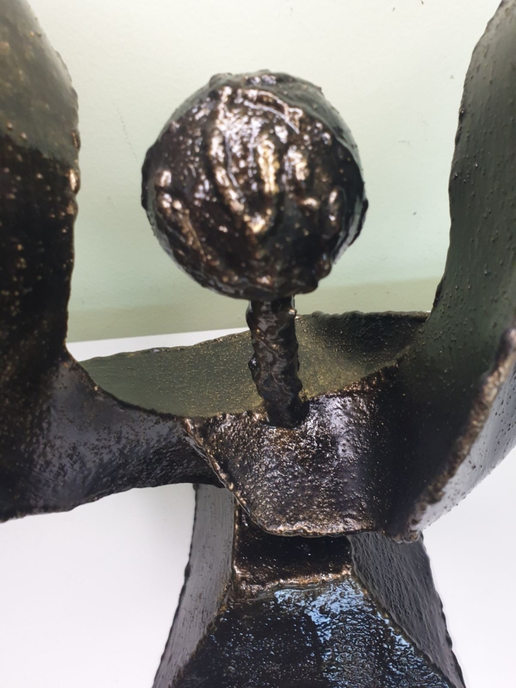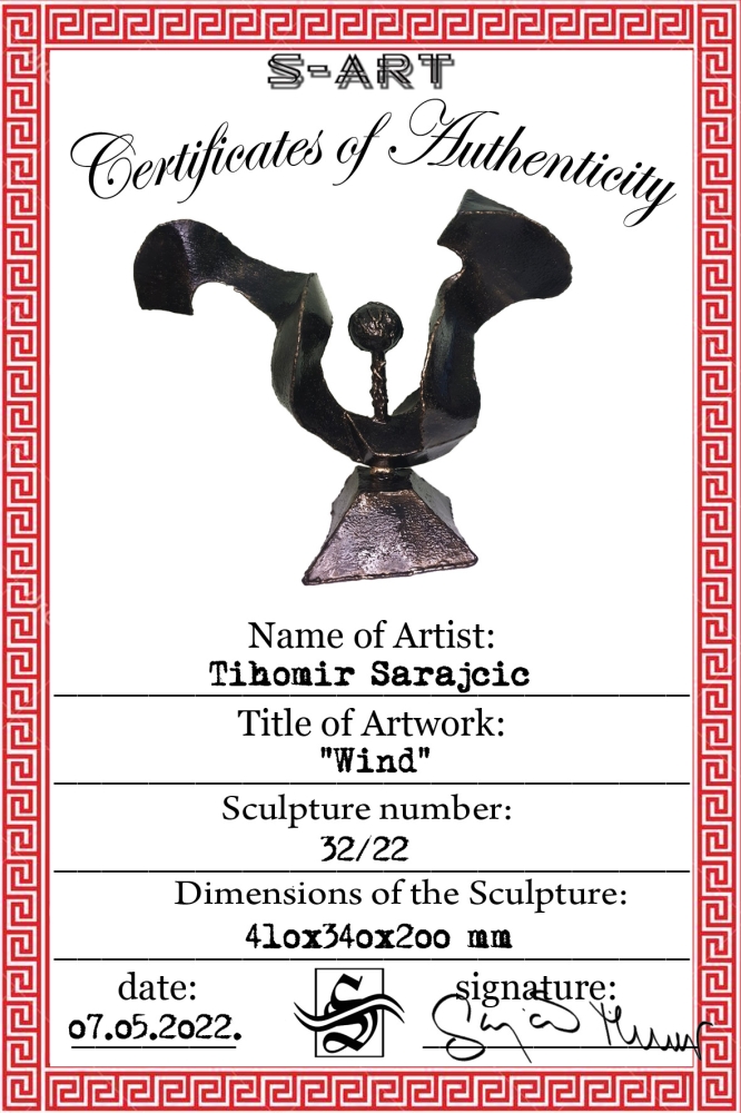 Wind, wind around a steel ball, plate 1mm welded in shape of the wind, sculpture from S-art studio. Unique welded and forged metal sculpture,it is not a casting. Material: carbon steel, color: black with golden wax, sprayed with transparent spray for protection. One of a kind work, comes with a certificate of authenticity. IMPORTANT NOTE: SHIPPING TO THE EU ONLY - NO SHIPPING TO NON-EU COUNTRIES.