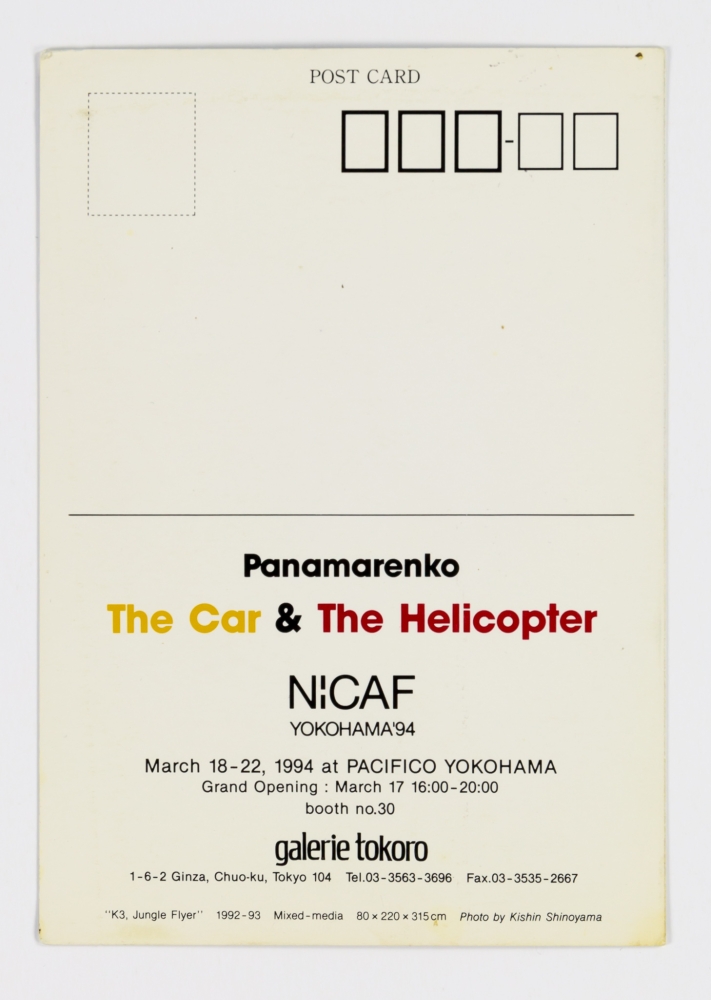 Postcard as promotional material for "The Car & The Helicopter" Tokoro Gallery, NICAF, International Contemporary Art Festival, Yokohama in 1994.