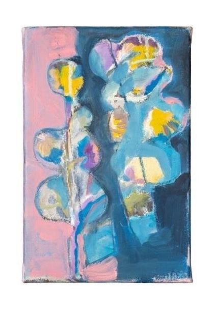Over de kunstenaar: Katrien Pareit is een gepassioneerd schilder die werkt met atypische kleuren die voor spanning in het werk zorgen. Haar werk toont een sterke gelaagdheid. Haar werken tonen een sterke wisselwerking tussen grafisch en schilderkunstig. Over het werk: Afmetingen 2x 31x20cm voor mij moet er een symbiose zijn tussen natuur en ruimte zowel in de uitvoering als in het thema. Het moet als het ware versmelten. De kleuren zijn bepalend om een fantasiewereld te creëren, een fantasiewereld die ontstaat in mijn hoofd met fauna en flora als vast onderwerp en ruimte als drager. Zo ontstaat er een eigen wereld van vormen en kleuren. (Opmerking:'foto in decor': de schaal van het werk kan afwijken van de realiteit.)