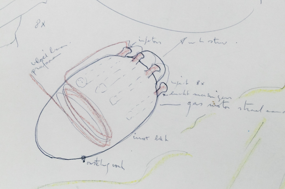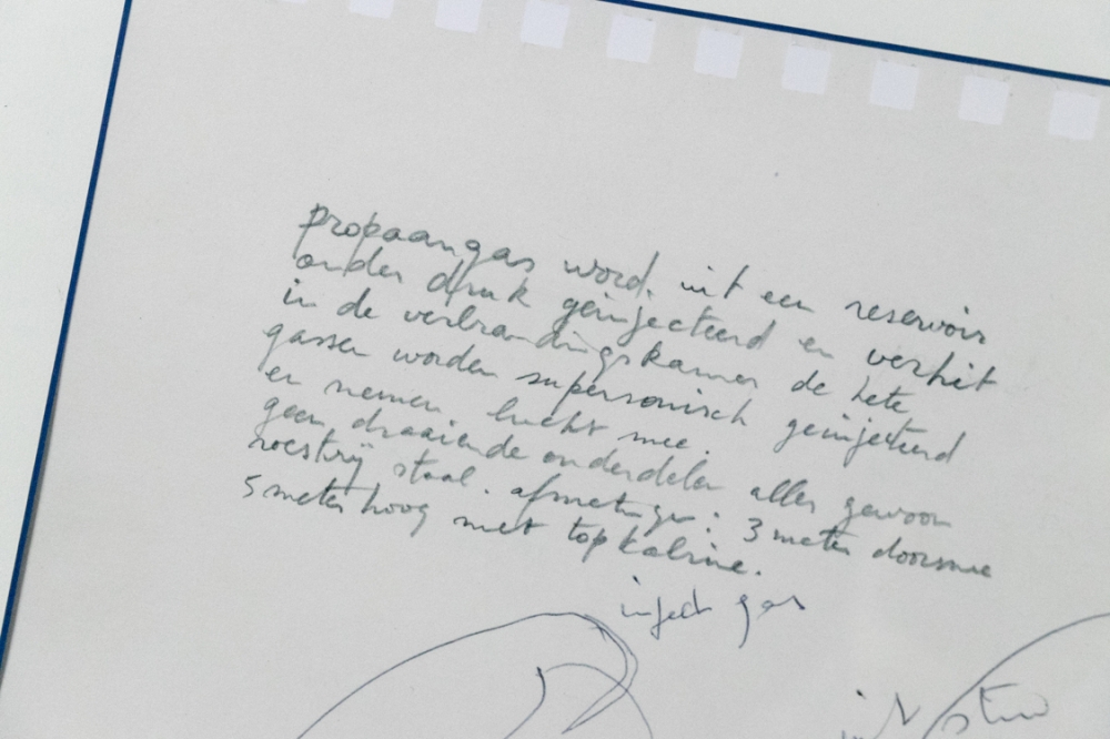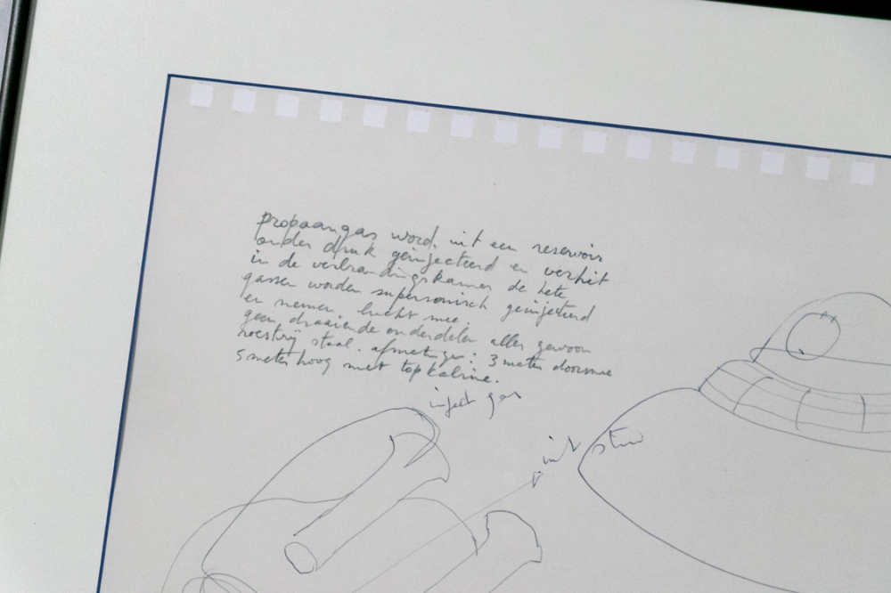 What is special about the work is that it contains a writing error. The text mentioned on the work "Propane gas word" must be written with dt. This is what characterizes Panamarenko.
