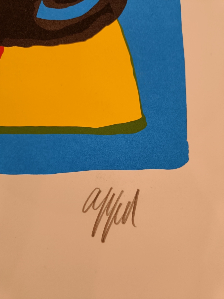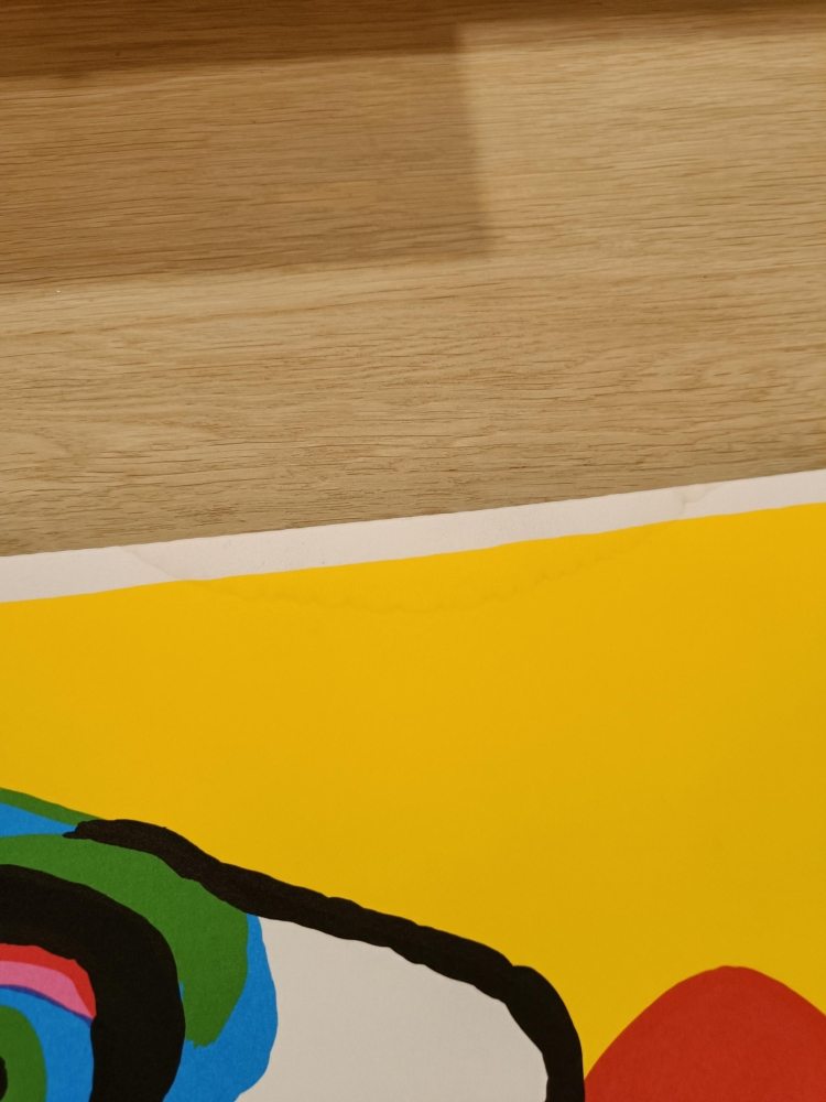- Fraaie zeefdruk op papier gemaakt door Geert Jan Jansen in de stijl van Karel Appel - Geweldige kleuren - Gelimiteerde editie: EA-editie bij een oplage van 120 stuks - Afmetingen blad: 88.5 x 65 cm Afmetingen tekening: 70 x 52 cm - Niet ingekaderd - Lichte waterschade op bovenvlak (zie foto voor duidelijk beeld). Slechts minimaal zichtbaar. - Wordt verzekerd en aangetekend verzonden