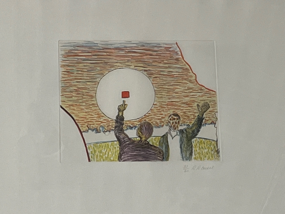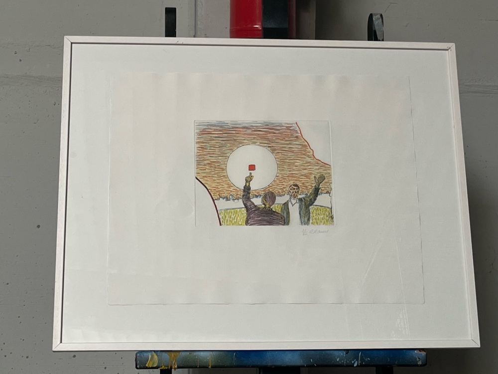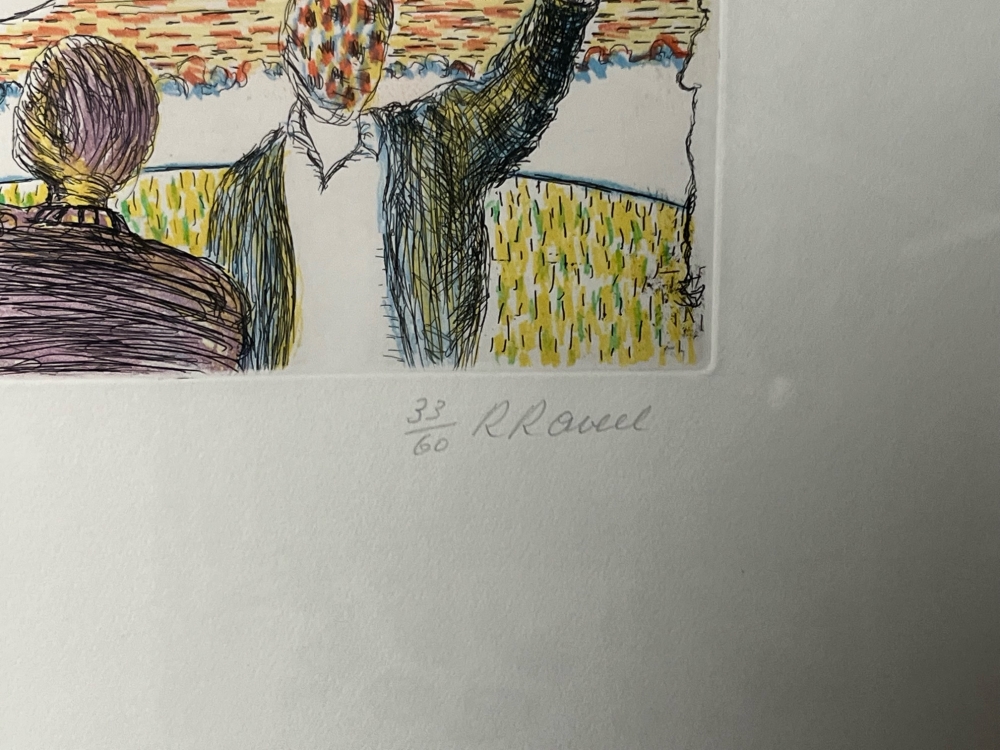 Roger Ravel "the convinced" it is a colored etching by ravel the work is signed and numbered the framing is in good condition. The work is described in the graphic oeuvre under number 255 on page 203.