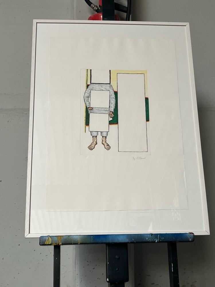 Roger Ravel "a full-length man (ii)" this is a color etching by ravel the work is signed and numbered the framing is in good condition. The work is described in the graphic oeuvre under number 259 on page 205.