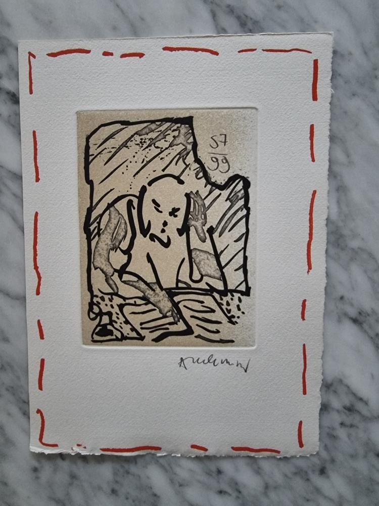 Beautiful etching by Pierre Alechinsky from 1992. Signed and numbered (57/99) in pencil by the artist. The work is published together with the voluminous (220 pages) and beautifully illustrated art book, with the same title "Travaux d'impression". This book is also part of this offered lot! Both the etching and the book are in perfect condition.