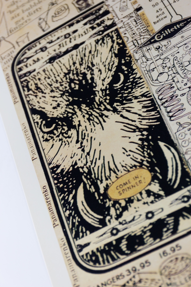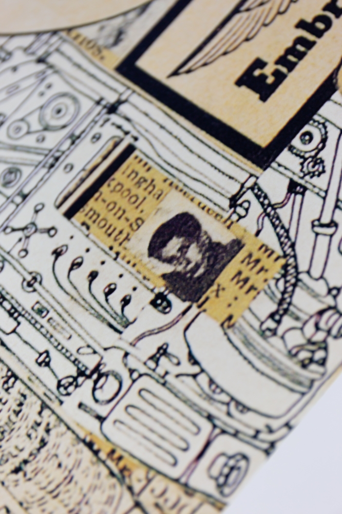 Rare prototype or test print as basis for Milky Ways & Happenings collage by Panamarenko in 2003. In the final version, certain parts were raised a few millimeters.