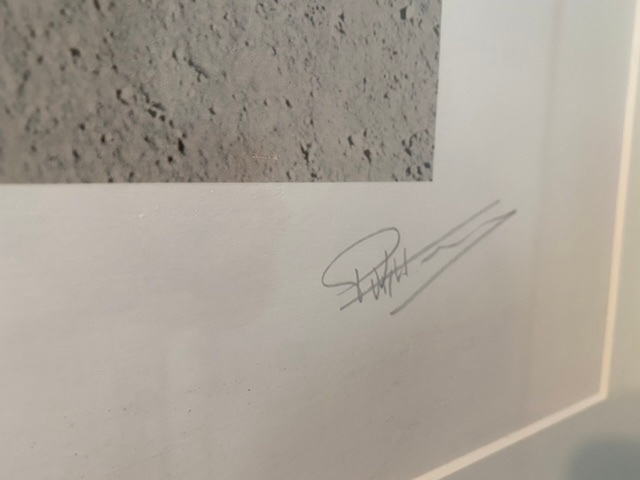 Beautiful offset by the Belgian artist Paul Van Hoeydonck . The work entitled Fallen astronaut Signed in pencil on the front. The work is framed in a wooden frame.