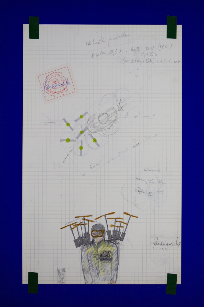 Pepto Bismo print, hand-signed by Panamarenko and labeled as "AP". This is, therefore, a rare and separate version, not included in the normal circulation.