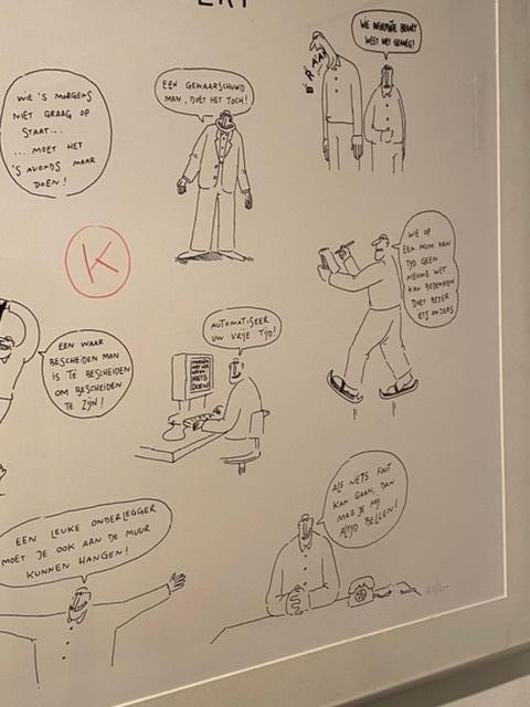 Beautiful funny screen print with the philosophical wisdom of Bert Vanderslagmulders. The silkscreen is signed with a red K. And numbered 165/200. The work is framed in an aluminum frame and is in perfect condition.