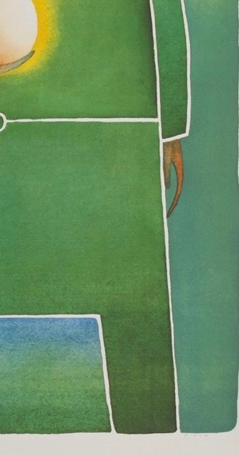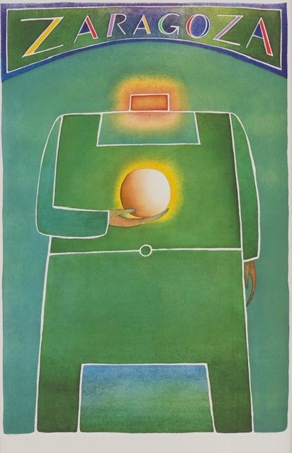 Large lithograph by Jean-Michel Folon. The work was made for the football world cup in Spain. Signed by hand lower right and numbered lower left in pencil in an edition of 150 copies. Perfect condition