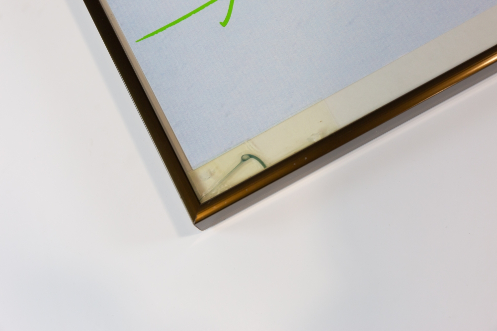 Het werk zelf is in uitstekende staat. Het kader heeft een barst in het glas in de linkerbovenhoek (zie foto)