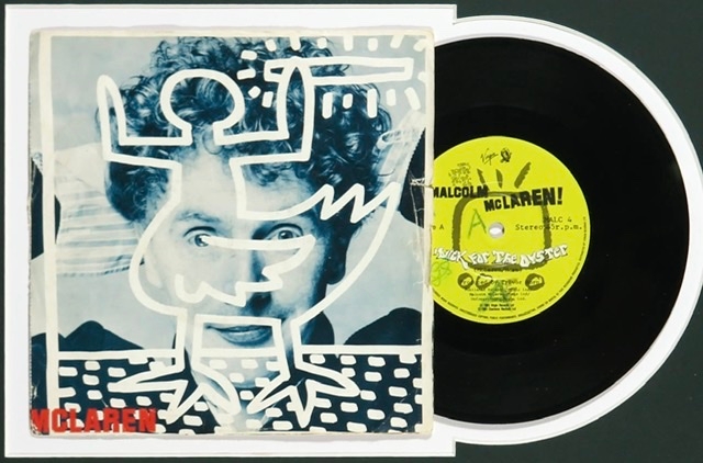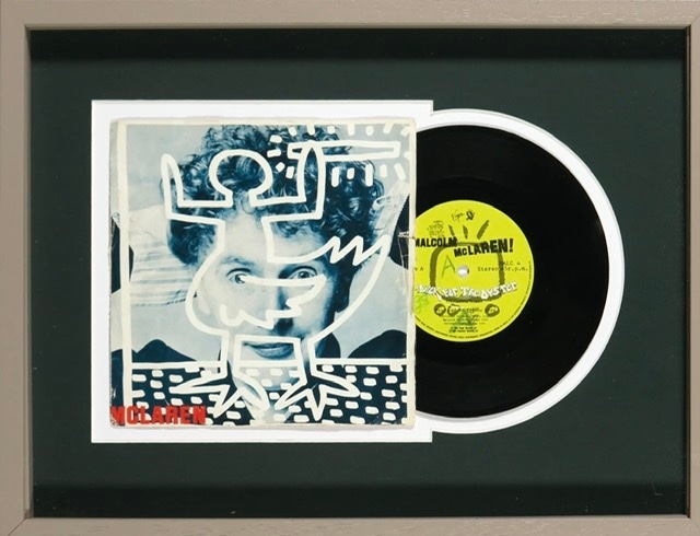 7'' single Duck for the Oyster by Malcolm McLaren, with a cover designed by Keith Haring. Tag: Charisma MALC 4 Dimensions frame: 32 x 42 cm. Traffic in very good condition with some signs of wear due to age.