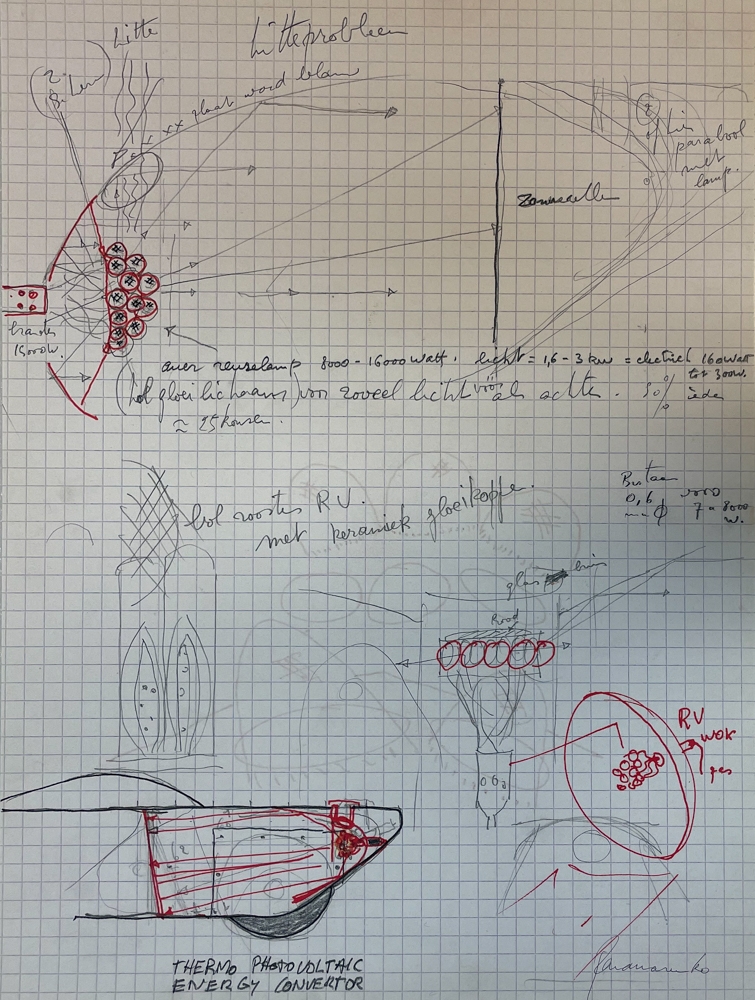 This work was shown for the first time in the "Thermo Photovoltaic Energy Converter" on October 21, 2001 in the winter garden and exit room of the Antwerp Zoo, organized by Ronny Van de Velde.