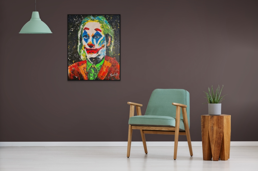 HENRY ESCOBAR - Joker - ORIGINAL ACRYLIC PAINTING - HAND SIGNED - COA Spanish artist Henry Escobar studied Applied Arts and perfected his painting and drawing skills by visiting studios. Quickly developing a realistic and figurative style, his rating keeps rising. Personal exhibitions: Madrid, Barcelona, Brussels, Miami, London, Paris, Geneva, Lausanne, Lyon, Belfort, Deauville, Nice, Dijon, Monaco. Unique work. Certificate of authenticity included. Technique: Palette knife acrylic painting with great thickness on linen canvas, mounted on adjustable wooden stretcher. Protected by a coat of anti-UV varnish. Original acrylic painting Perfect condition Certificate of Authenticity i-CAC (Indice de Cotation des Artistes Certifiés): €1970 Size: 100×2,5×73 cm Year: 2021