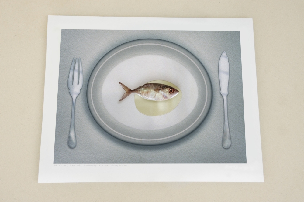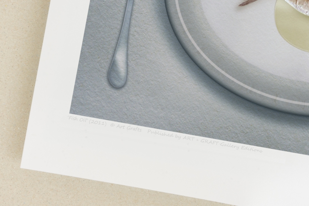 ● Two 15" x 12" Chromogenic Prints ● Fish Dish (2011) ● Fish Oil (2011) Image sizes 13" x 9½" (33 x 24 cm) Print sizes 15" x 12" (38 x 30 cm) ● Signatures and numbered gallery stamps on rear ● Titles below images ● Certificate of print authenticity ● Mint condition ● Ships rolled in a large PVC tube