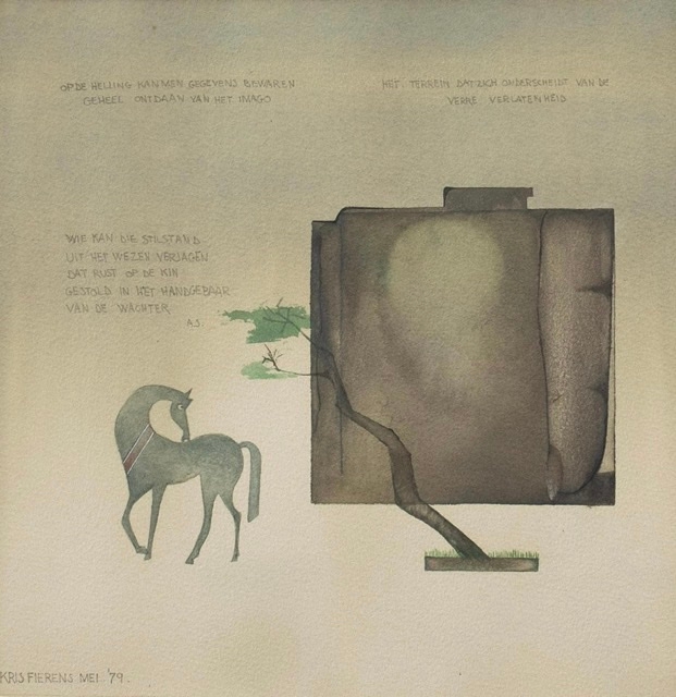 An original work by Kris Fierens from 1979w watercolor on paper Signed and dated lower right Framed. The seed of the work of Kris Fierens (born 1957 in Schoten, works in Antwerp) must be sought in the notion of 'movement'. The beauty and emotionality that a particular gesture or movement entails is the essence of Fierens' paintings and drawings. The subconscious plays a major role in this: the paint on the canvas is the result of a movement, propelled from the subconscious.