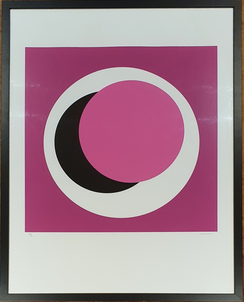 Beautiful composition by Geneviève Claisse (1935-2018) based on her original work 'Cercles' from 1968. The work is framed. Dimensions including frame: 84 x 65 cm. The work is signed and numbered 29/40.
