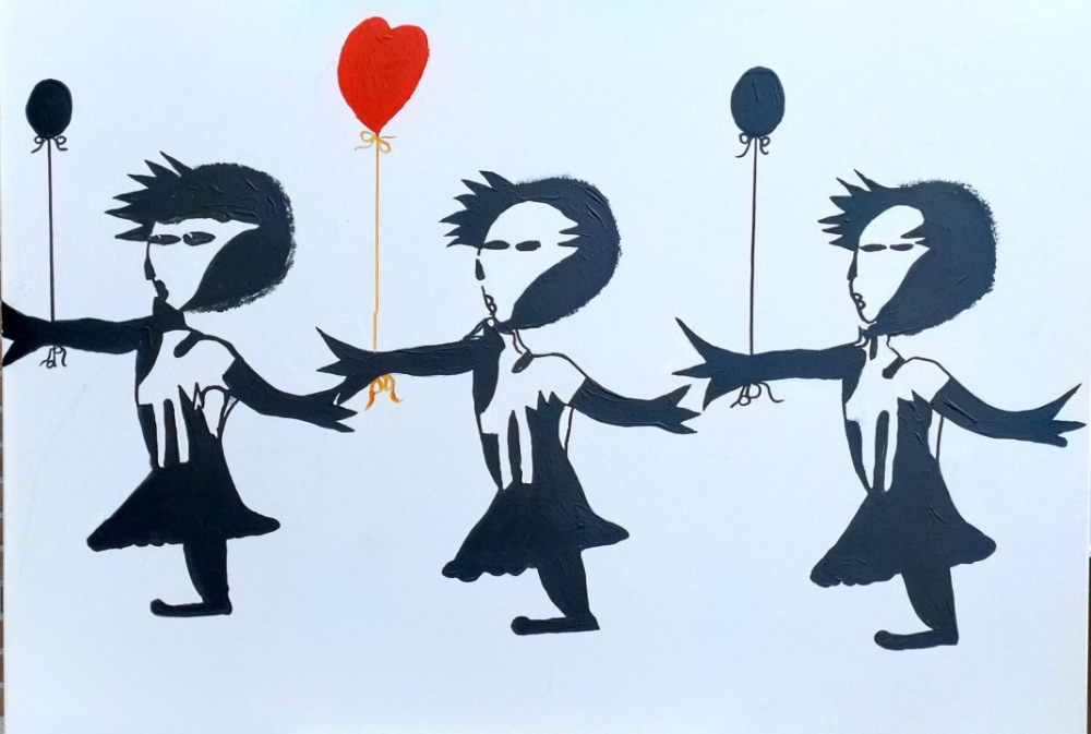 A.M.G. , hier met een popart werk , die een uitdaging is , om dit popart werk , door zijn eenvoud , toch dezelfde uitstraling kan hebben , hij heeft dit als een uitdaging opgepakt , en hoopt dichbij te komen .