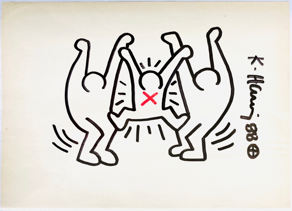 original drawing in black felt-tip pen on thin paper. Paper slightly yellowed due to age. Hand signed - '88 In good original condition dim. approx. 29cm x 21cm The drawing is accompanied by a COA statement from the Keith Haring Studio LLC stating that it is an authentic drawing by Keith Haring.