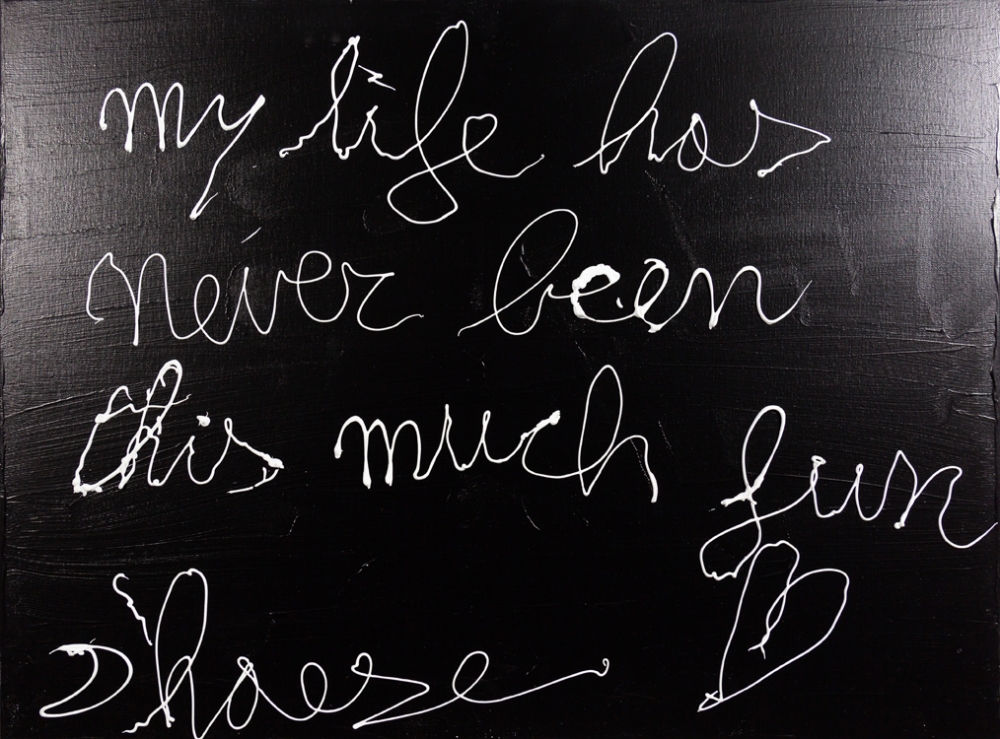 A unique painting by Hannes D'Haese, with the inscription "My life has never been this much fun".