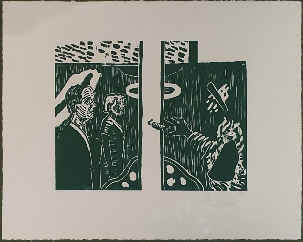 Very beautiful and rare color woodcut by the Belgian artist Roger Raveel. This is a green variant (20 copies) on the black and white version that is more common (100 copies). The green version is also historically important as the gate in front of Raveel's house was green at the time. The work is signed with mention '84 and numbered 18/20. The work is floating framed. The work is described in the graphic oeuvre under no. 145 on page 128. Unique opportunity to acquire such top-class work.