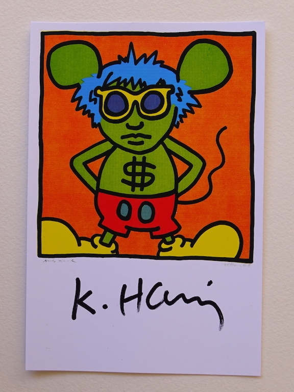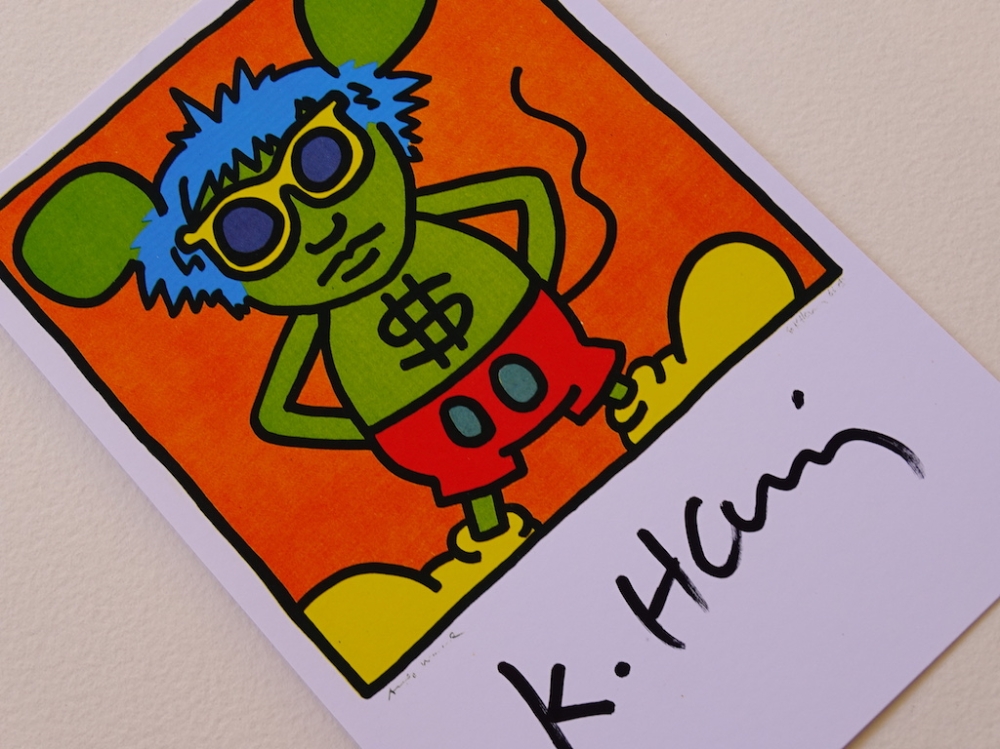 Keith Haring Postcard, hand signed 15x10cm The front of the banknote features Heith Haring's signature in black marker Keith Allen Haring (May 4, 1958 February 16, 1990) was an American artist whose pop art emerged from the New York City graffiti subculture of the 1980s. His animated imagery has "become a widely recognized visual language".[2] Much of his work includes sexual allusions that turned into social activism by using the images to advocate for safe sex and AIDS awareness.[3] In addition to solo gallery exhibitions, he participated in renowned national and international group shows such as documenta in Kassel, the Whitney Biennial in New York, the São Paulo Biennial, and the Venice Biennale. The Whitney Museum held a retrospective of his art in 1997.