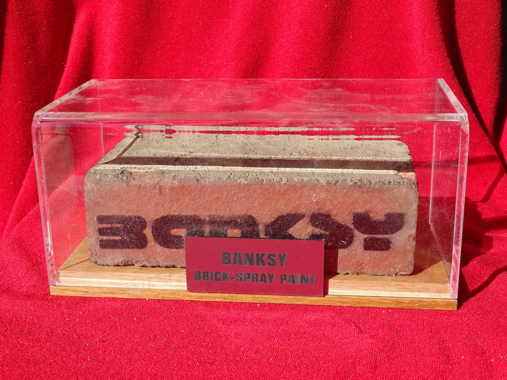 Banksy (attributed) spray paint Original storage box included Provenane: private colletor The Object cannot be authenticated by Pest Control. Pest Control authenticates only works of Street Art that are still located in their place of origin. This work was removed from its original site and according to Pest Control it was not made for trade, therefore Pest Control rejects to authenticate the work.