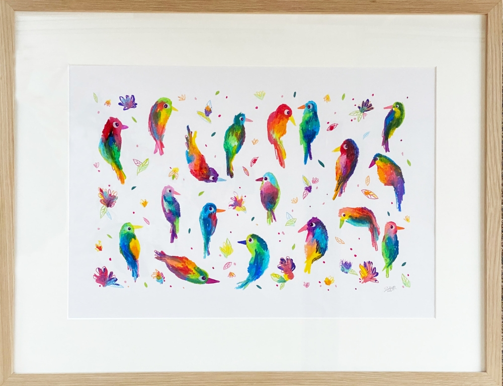 When I received the box of Pentel Arts oil pastels, I first admired the diversity of colors and above all I had a desire to use them all! My illustrator name is "anything but beige", that means what it means...I love color and I think that more than ever, we need it in our current lives. In my illustration work, I have a soft spot for birds...as a result, parrots quickly imposed themselves on me! They perfectly represent this moment of exchange, of colorful, almost musical chatter with the public. I hope viewers feel as much joy watching my drawing as I had creating it! Stéphanie Le Begge has been an illustrator and graphic designer for many years. She has collaborated with several publishing houses for young people such as Thierry Magnier, Auzou... her illustration work within Everything but Beige is colorful and often naive. Recently she decided to also start painting again and explores the limits between abstraction and illustration, which creates quite poetic dreamlike paintings.