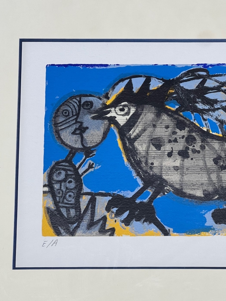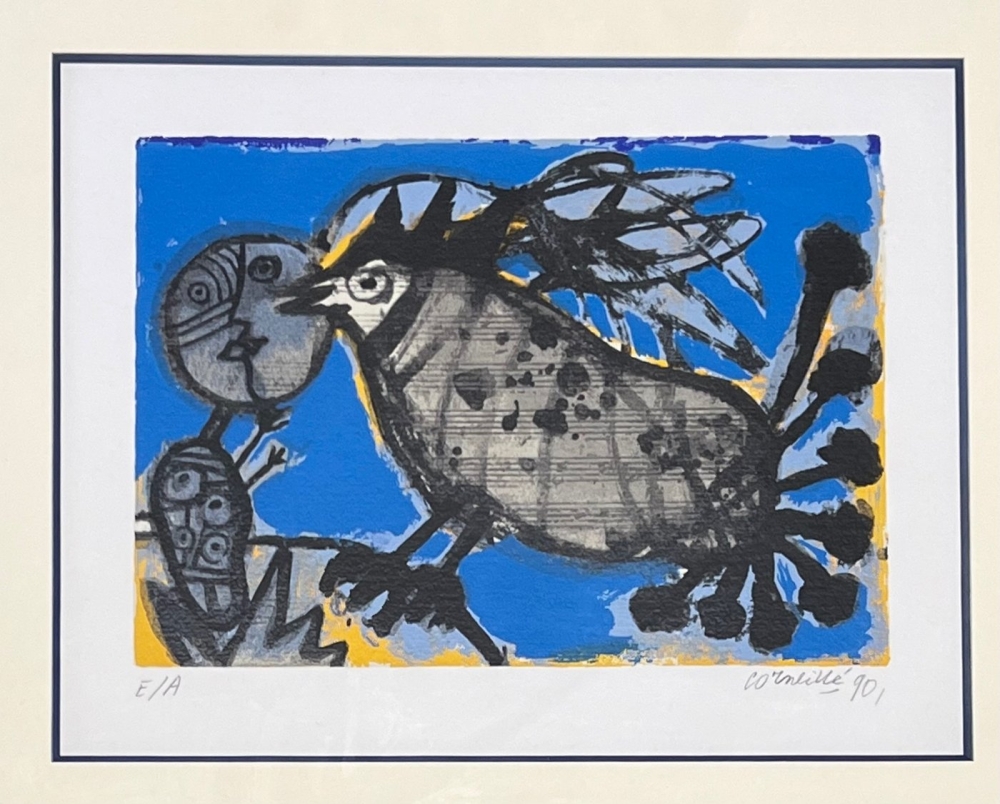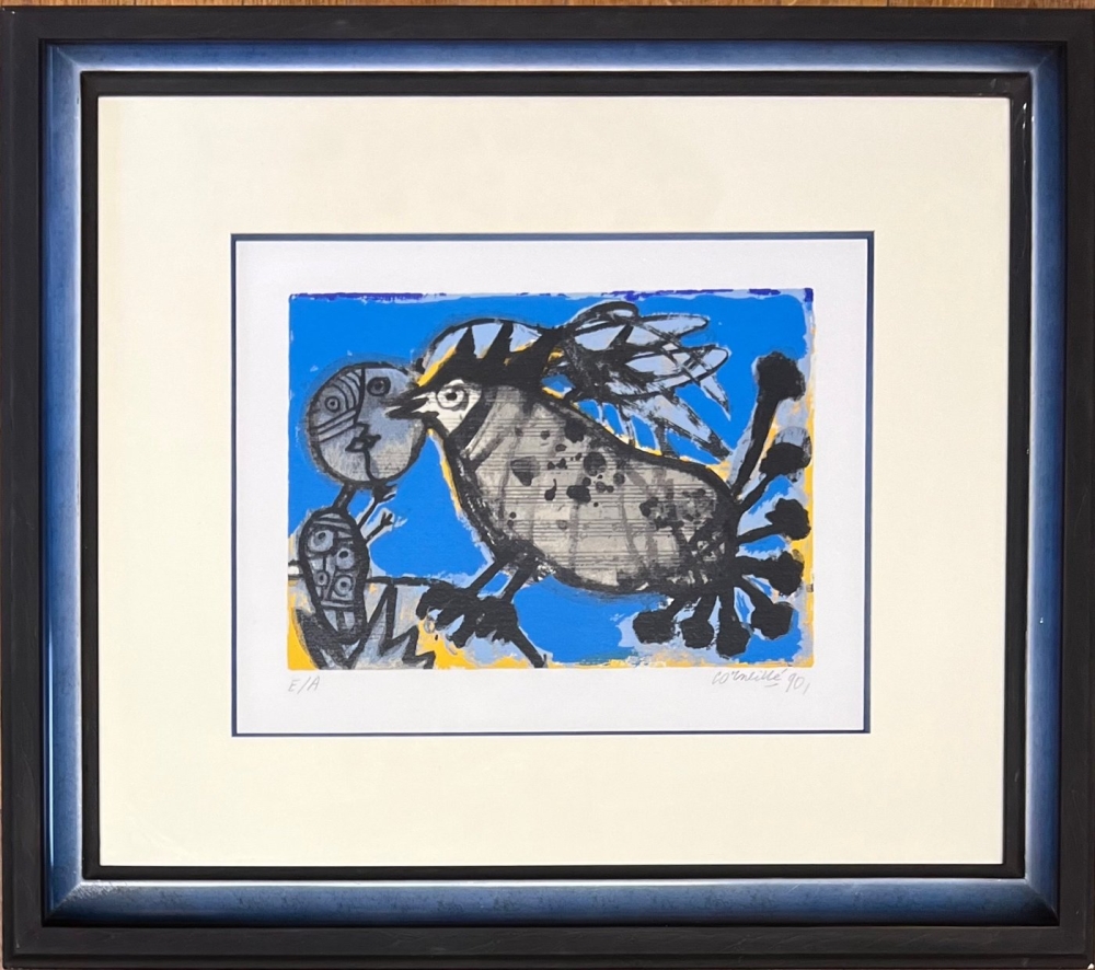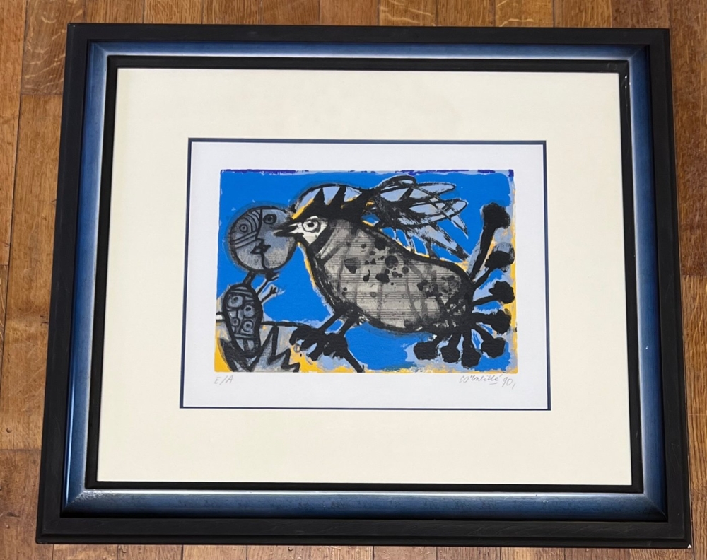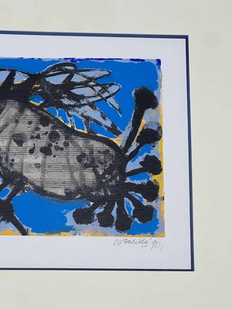 Retrospective of Cornelille that ended on January 15 in the Cobra Museum in Amstelveen. Issue of a Cobra / Corneille stamp by Bpost in 2023 Jewelery by Corneille on display at the Boghossian Foundation until May 14, 2023 (Ornamentum, Collection Diane Venet) Beautiful original framed screen print by the painter Guillaume Corneille (1922-2010), born in Liège from Dutch parents, founding member of the Cobra movement, with Karel Appel, Constant, Asger Jorn, Dotremont, Joseph Noiret or Lucebert or Alechinsky. Periodic table made by the painter. Solid wood varnished and painted as is (with some shocks and traces of wear) with Atelier Corneille stamp on the back. Total dimensions with frame: 59 x 68 cm - 1990 - Please note: this is our ONLY copy! Signed and dated in pencil by the artist - Artist copy E/A Guillaume Corneille was guest of honor at the Salzburg music festival and worked for several years on the theme of classical music (to the sounds of his favorite composers: Mozart, Tchaikovsky, Gustav Malher, Erik Satie, etc.). Like Pierre Alechinsky, he made many works on music scores. Very good condition - Safe delivery in BIG BOX with insurance by UPS Guillaume Corneille, grand master of colors in the footsteps of Gauguin and Matisse, creates a jovial world full of exoticism.