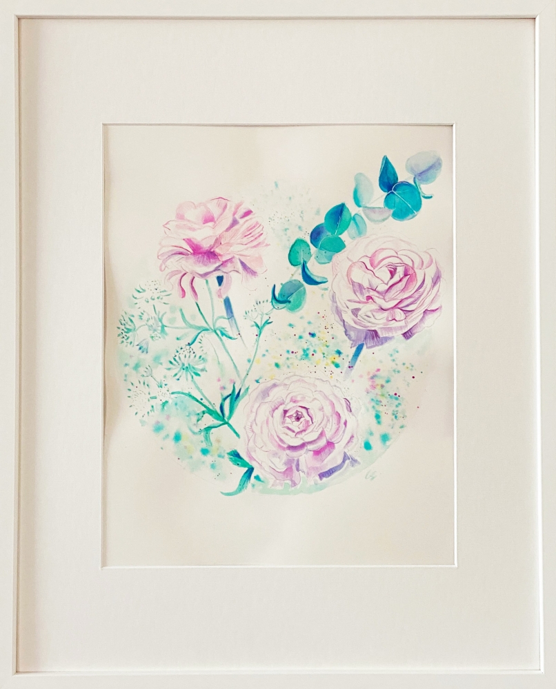I hold a Fine Arts degree from St Luc (Advertising) and am passionate about watercolors and plants. I have titled this work "A longing for spring, ranunculus and mimosa".