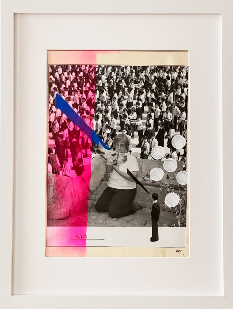 Scissors, paper, a few markers and glue, that's all you need to make the craziest collages and compositions. Lies Van Driel aka TRUT, flew around the world ( Coffee, tea me? ) and loved to make collages to keep both feet on the ground. Her artwork under the name TRUT is worth sticking to the wall. The name is Trut and although this is a swear name, there is nothing negative about her. You will especially be incredibly well disposed to the humor in her unique pieces. Elisabeth does not edit anything digitally and simply uses scissors, paper and glue. She gets her materials such as magazines, books or paper at flea markets and thrift shops.