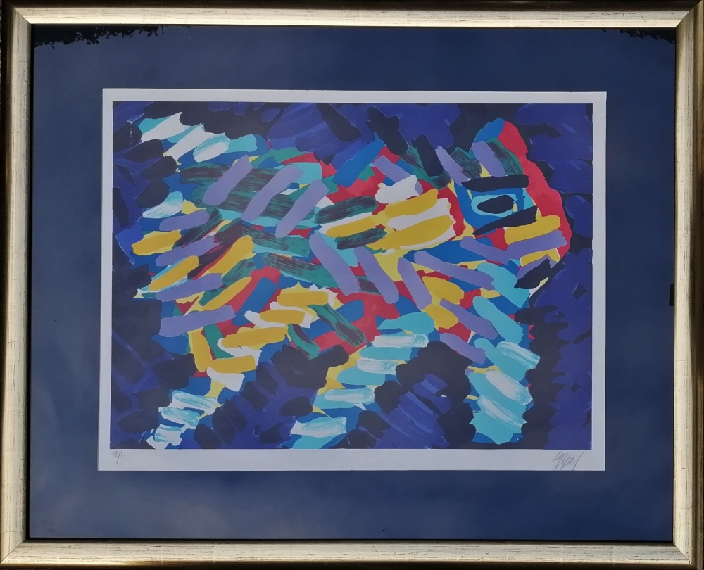 KAREL APPEL (1921-2006) Mooie grote lithografie "Beest" uit TEN, 1978 Gesigneerd rechts onder, links editie AP In een moderne gouden lijst onder plexi- glas. Afmetingen zijn 108 x 89 cm in de goudkleurige lijst.
