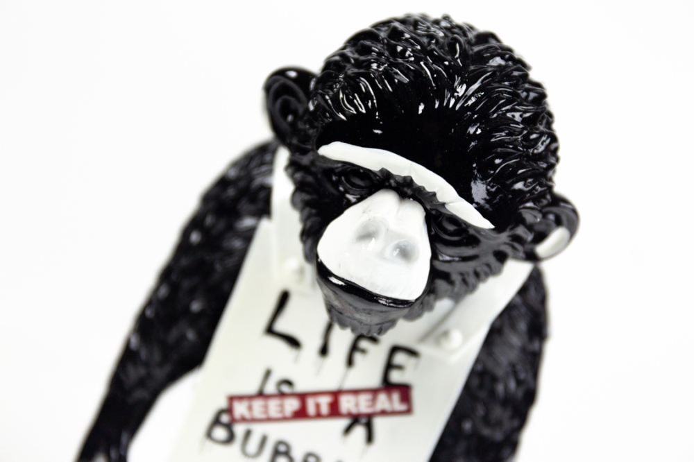Sculpture from synthetic resin by Diederik Van Apple. These 'street monkeys' are hand painted and have a printed inscription. The edition is limited to 250 pieces.